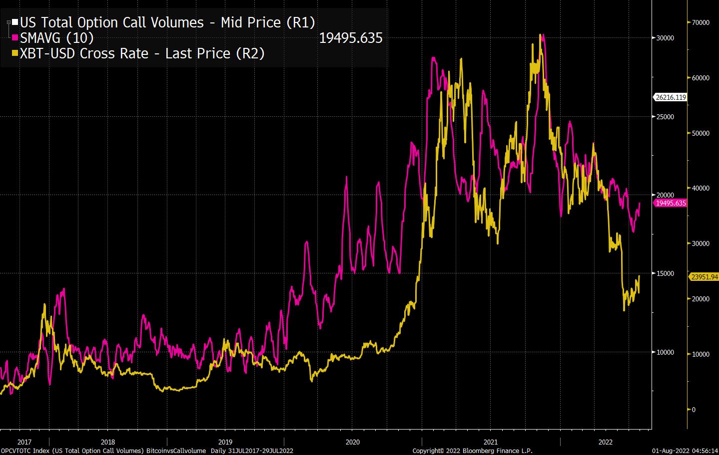 | Factory activity plunge, secrets of the biggest gold traders revealed, and there's speculation Musk might sell more Tesla shares European factory activity plunged and Asian manufacturing output continued to weaken in July amid lingering supply-chain complications and a slowing global economy. Purchasing managers' indexes for the euro area's four largest members all indicated contraction, with shrinking confirmed for the region as a whole after an initial estimate on July 22. The trial of JPMorgan Chase & Co.'s former head of precious metals has offered unprecedented insights into the trading desk that dominates the global gold market. Michael Nowak, who ran precious-metals trading at JPMorgan for more than a decade, is being tried in Chicago along with colleagues Gregg Smith and Jeffrey Ruffo for conspiring to manipulate gold and silver markets. Investors expect Elon Musk to sell more shares of his electric carmaker Tesla by the end of 2022, according to the latest MLIV Pulse survey. About 75% of 1,562 respondents, who include portfolio managers and retail traders, said Musk won't end up owning Twitter Inc. -- a deal that led him to offload about $8.5 billion of Tesla shares in April. The car company has signed new long-term agreements with two of its existing Chinese battery-materials suppliers. European stocks extended gains even as US equity futures slipped a tad at 5:34 a.m. New York time. Corporate earnings continued to deliver upside surprises while investors assessed remarks from central bankers that higher interest rates are needed to bring inflation under control. The dollar fell, while Treasury yields inched higher, but at about 2.67% the 10-year rate is well down from June's peak near 3.50%. The yen jumped for a fourth session versus the greenback. It's a very busy day on the earnings front, with reports from Activision Blizzard, ON Semiconductor, Pinterest, Global Payments, Williams Cos., Aflac, Devon Energy, Diamondback Energy, Arista Networks, Loews, CF Industries, Mosaic. Also due is the US July manufacturing PMI, and we'll get insight into the June construction-spending numbers. Here's what caught our eye over the weekend. Cryptocurrency prices have rebounded nicely over the last month, moving in line with the broader rally that we've seen in stocks. Here are three quick observations: 1) Since the bottom in mid-June, Bitcoin is up 31%. But Ethereum is up nearly 90%. You could argue that right now, the Ethereum narrative is MUCH stronger than the Bitcoin narrative. Bitcoin bulls had put all their eggs in the anti-inflation basket, that it was this super-hard form of money that would hold up during monetary mayhem. But the last year has really wrecked that narrative. Basically it's traded like a normal tech stock, and provided no extra boost in the face of rising consumer prices. Ethereum has also traded like a tech stock basically, but it's thesis hasn't quite been wrecked like Bitcoin's. Ethereum is a long way from being some world computer, or decentralized platform for finance and communications. I'd say the major Ethereum narrative is unproven, as opposed to disproven. The ETH/BTC ratio is nearly back to where it was this spring. Bitcoin desperately needs some new narrative that hasn't been undercut by the events of the last year. 2) Speaking of Bitcoin and inflation, a notion you see sometimes is an attempt to redefine inflation as something other than "prices going up". Instead people say that inflation should be defined as an expansion of the money supply (like growing M2 or M3 or something). If you go by this, they argue, Bitcoin has done well when the money supply has grown, and only started doing badly over the last year, with the start of monetary tightening. There's a bunch of problems with this line, though. The main one is that people who were sold Bitcoin as an inflation hedge almost certainly didn't have this alternative definition in mind. And for good reason! People don't need a hedge against some increase in a measure of monetary aggregates. What they need is a hedge against prices going up. People want a hedge against rising gasoline, food and rent. And when that happened, the value of their Bitcoin flopped. Even setting aside Bitcoin's performance, redefining inflation as an increase in the money supply is silly on its own face. We've had plenty of periods where monetary aggregates soared without an increase in consumer prices (most notably in the wake of the Great Financial Crisis). So yeah, this one is a non-starter. 3) So if inflation isn't a guide to Bitcoin's price, then what is? On the latest episode of the podcast, we spoke with Benn Eifert of QVR Advisors about the lessons of the last incredible two years in markets. And of course, we talked about how present speculative Robinhood buyers still are in the market, and all that stuff. Obviously many of the retail players have departed the scene, but also many are still around. Anyway, while we were chatting during the recording, talking about call option volume, and all that stuff, I came up with this chart. It shows Bitcoin (yellow) vs. the 10-day moving average of call option volume on US equities. Total equity call option is a reasonable guide to retail speculative activity, and the two charts align pretty nicely. You can definitely see it with the two peaks in 2021. And in fact you can even see the link with the 2017 Bitcoin peak. Basically when people have an impulse to gamble in the stock market, that's also a bullish period for Bitcoin. And when people are losing interest in speculating, Bitcoin slides. Not perfect, of course, but a better guide than what inflation is doing, that's for sure. Anyway, check out our whole interview with Benn on Apple or Spotify. Follow Bloomberg's Joe Weisenthal on Twitter @TheStalwart |