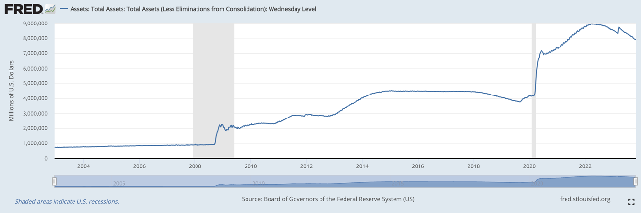 | How far will the Fed let its balance sheet shrink? Well not back to where it was before certainly. The Treasury market is much bigger now. So the Fed's balance sheet needs to be correspondingly bigger. And if the Fed wants to have ammunition to impact financial stability it needs an even bigger balance sheet if the outstanding Treasury debt was $10 trillion in 2008 and it's $33 trillion now. You could easily see a $3 trillion Fed balance sheet. Throw in higher regulatory capital requirements requiring higher reserve balances and a buffer for fighting crisis and you could get to $4 or 5 trillion. That's not the $7.9 trillion we currently see. But it's a lot bigger than before the Great Financial Crisis. So while rate policy may be going back to the 1980s and 1990s, the balance sheet is not. Likely, if you listen to what the Fed officials say they want to achieve, we're going to see a bigger balance sheet in perpetuity. One corollary here is that it reinforces the concept the Fed isn't going back to zero. The Fed won't need to cut to zero if it uses its balance sheet for financial stability. Imagine a world where the Fed cuts rates from 6% to 3% in a recession and mops up any financial instability concerns with special targeted programs using its balance sheet. That way real interest rates act as friction against higher inflation after the recent stagflationary scare, scarred as we now are. Gone are the days of massive rate cuts to near zero that began in the 2000s and huge Fed buying that began in the late 2000s. Savers will continue getting 3% interest, mortgage rates won't drop to 3%, and the discount rates for stocks will remain elevated. That's a lot different than the past 15, even 25 years. All of that sounds a lot more like the Fed of William McChesney Martin, who led the institution from 1951 until 1970 and famously quipped that the Fed's job was "to take away the punch bowl just as the party gets going." So forget the Fed put and get ready for a less forgiving safety net for investors. Even so, if you listen to the way Powell and others speak, there has been a sea change in how they think about monetary policy's influence on the more economically vulnerable and less wealthy. Time and again Powell talks about raising rates to quell inflation in order to help exactly those members of society who are most impacted by inflation. He also stresses the balancing act they have in not overdoing it and causing a recession that throws those same people out of work. After all, having a paycheck but dealing with inflation is a lot better than having no paycheck at all. I don't think this is just lip service. The Fed really wants to thread the needle. And that means the days of NAIRU — the non-accelerating inflation rate of unemployment — driving the Fed to hike lest a too, too low unemployment rate cause inflation to spiral out of control are over. The Fed now believes we can have our cake and eat it too, keeping inflation and unemployment low as long as real interest rates are permanently restrictive. Their hope is it means the end of boom bust, which most benefits those that get onto the employment ladder last in any business cycle. On Wednesday afternoon I expect to hear the contours of this policy framework in what Powell has to say as he speaks after the rate decision at 2 PM. A lot of it is the a repeat of what we saw before, but with key differences on the balance sheet and thinking about the Phillips Curve pitting unemployment against inflation. Bonds are going to love this. It's not the bond market rally we saw as the 10-year Treasury yield came down from over 15% in 1981. But it does ensure bond investors can safely clip coupons once we reach the plateau the Fed thinks is restrictive enough to keep tightening policy. I think there is a non-zero chance the Fed is forced to go to 6% in 2024 if the US economy remains hot and inflation stays above 3%. So we're talking about the period just afterward. Even so, some investors already feel near 5% yields are good enough. They're moving out of cash and further out the curve. Stan Druckenmiller even recently said he's very bullish on 2-year Treasuries. And the bond market math behind so-called convexity says it's not much harder to inflict further huge losses on Treasury investors. If there is a recession, you can see the Fed cutting rates and giving enough rate relief to debtors that it buoys the economy without the Fed needing to get to zero rates. If mortgage rates fall from 8% to 5%, how many people with 4% mortgages would be willing to move? A lot. All you need is to get into the ballpark of where their existing rate is and suddenly people are willing to make different decisions. That's not a 'Fed Put' though. So those people who overweighted risky equities instead of hugging the index via ETFs are not going to find a lot of rate relief to help them as recession takes hold. AMC is nearly 88% down from its 52-week high, for example. A few Fed cuts isn't going to get you anywhere close to those previous levels. For equities overall though, let's remember that we only recently came off the 4th ever period of 200% real returns over a decade. That's a headwind for future returns since long-term equity returns tend to overshoot to the downside after such magnificent run-ups. And it's the real yield that will do it. Back in August I wrote "the peak in US equities was probably in July." Stocks have since had an official 10% correction from that July peak — and for the reasons I outlined then, rising real yields. And as the Fed wants higher real yields permanently, this is a permanent headwind for equities from that high base. Mind you, stocks can continue to rally as long as we avoid recession. But that rally is capped by a higher discount rate and competition from bonds. A 60-40 portfolio, in that context, doesn't seem so bad. I want to end this on a bright note. Since increasingly people are thinking about getting exposure to differen