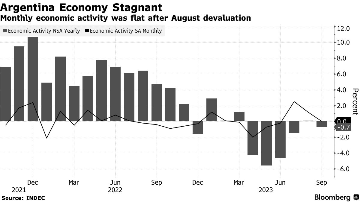 | I'm Chris Anstey, a senior economics editor in Boston and today I'm looking at Argentina's economic policy dilemma. Send us feedback and tips to ecodaily@bloomberg.net or get in touch on X (formerly known as Twitter) via @economics. And if you aren't yet signed up to receive this newsletter, you can do so here. - China's manufacturing and services sectors slowed in November.