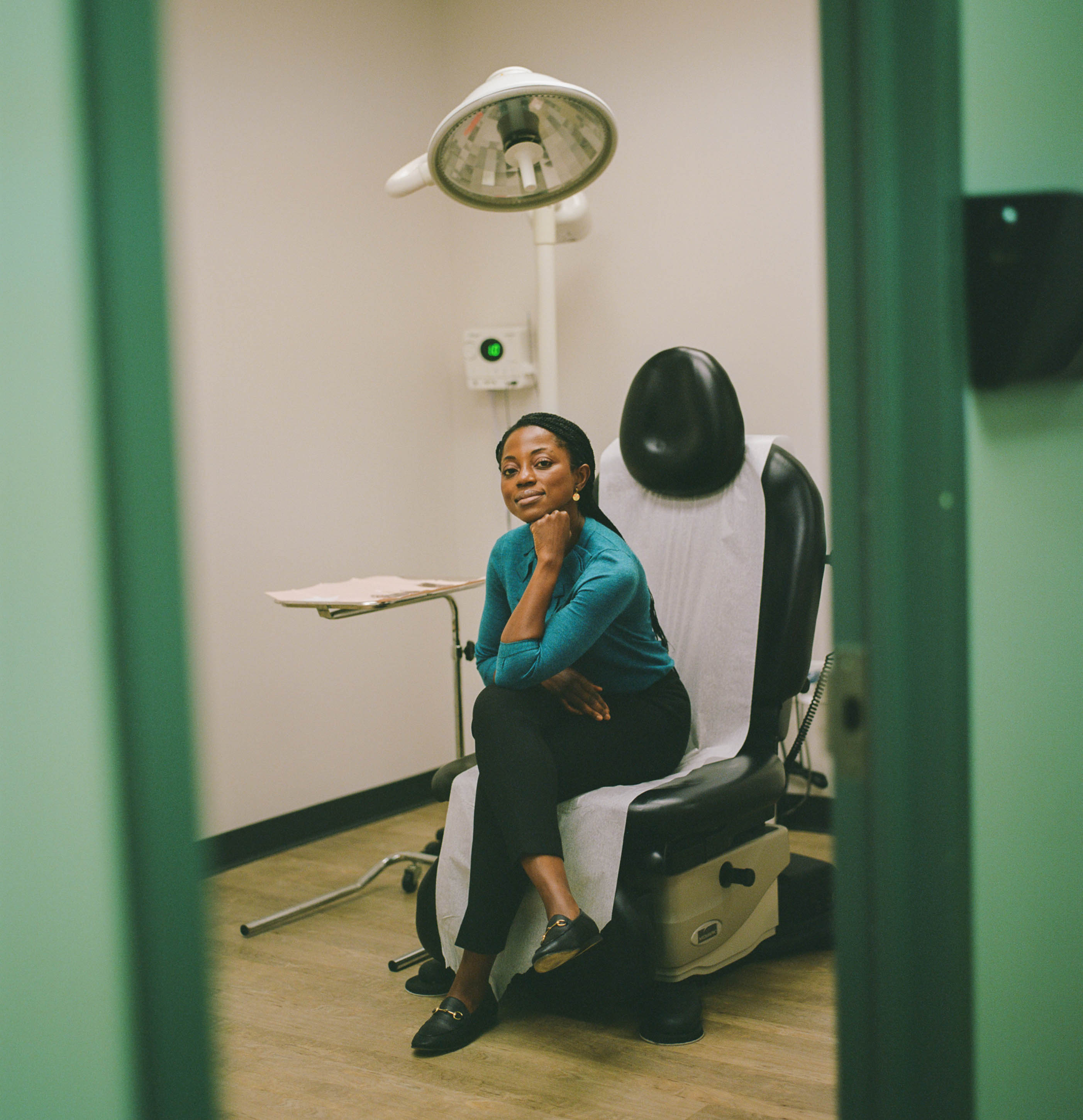 I produce a series at Bloomberg called Industry Shakers, where we profile entrepreneurs and business owners who are BIPOC. Having Elianel Clinton make portraits of the dermatologist Naana Boakye was a match made in heaven. He shoots film, and it's his style to take his time with subjects, creating an intimate feel. Photography in medical offices can look stale and monotone, yet he was able to deliver painterly, intimate pictures of her—not easy to do given the context. — EO