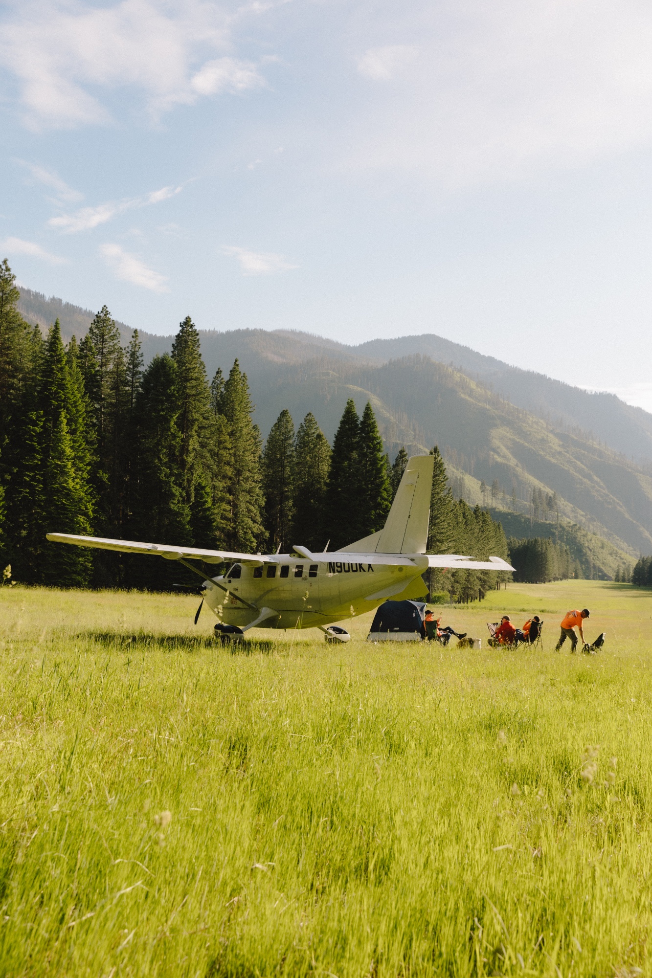 Backcountry camping under the wing of the Kodiak 900 in Idaho's Nez Perce National Forest. Photographer: Stephanie Noritz for Bloomberg Businessweek