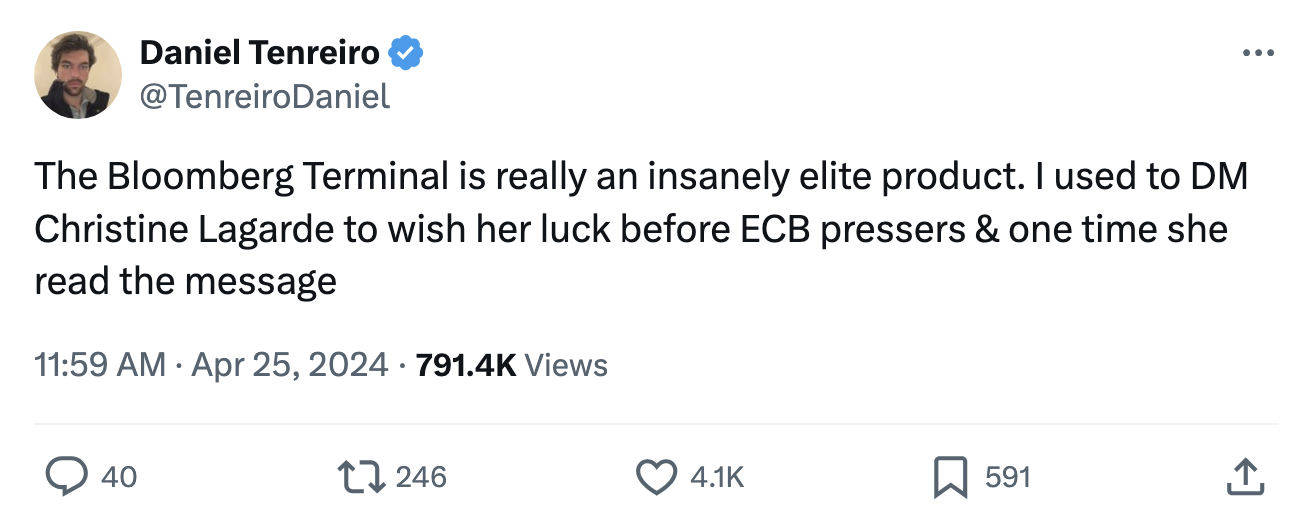 | This is Bloomberg Opinion Today, the private aspirations and dreams of Bloomberg Opinion's opinions. Sign up here. When writing literally anything, whether it be a dissertation on Russian literature or a grocery list, you have to assume your audience has a certain level of knowledge. An English professor, for instance, doesn't need a definition for "Gogolesque." Your spouse, on the other (very clueless) hand, has no idea where to find Calabrian chiles in the supermarket, so you spell it out for them: AISLE 9, UNDER THE OLIVE SHELF, NEXT TO THE PIMENTOS … IT'S THE JAR WITH THE RED LID. MAKE SURE TO GET CRUSHED, NOT WHOLE!!!!! Which brings me to the topic at hand. Since you're someone who reads the Bloomberg Opinion Today newsletter, I'm assuming you know what a Bloomberg Terminal is. If you don't, that's my mistake. You can check out this Wikipedia page or this YouTube video or, if you're in the mood for a lengthier education, there's an entire book about it. But if you're too lazy to do any of that, this tweet pretty much sums up all you need to know: In addition to IB (that's Instant Bloomberg, for the uninitiated), the Terminal has functions for all sorts of things. There's DINE <GO>, FLY <GO>, QUIZ <GO>, the list goes on. My new favorite is CHLL <GO>, which is a deep breathing tool that tells you when to inhale and exhale. It's great, because now I actually have an excuse when my boss catches me staring blankly into the abyss. But really, burnout is real. And nobody knows that better than Karishma Vaswani, our columnist in Singapore. In her latest free read, she says the city-state is one of the most competitive, overworked and stressed-out societies on the planet. "There is a silent epidemic of depression and mental health hiding just under the surface as citizens struggle to balance work, life, family, and their own private aspirations and dreams," she writes. Sometimes, the stress of having to hear a Slack notification in your sleep is not worth all the effort. That's how 31-year-old retiree Ashish Xiangyi Kumar feels, at least. Despite being Singapore's top Indian student in 2004 and graduating second in his class with a law degree from Cambridge, he decided to leave his high-paying government job at a young age. Ashish's realization — that life is about more than just good grades, the right job and the amount of money in the bank — was wise, albeit unorthodox. Karishma says "his decision to retire at such a young age has prompted scores of Singaporeans to marvel at the path he has taken." Elsewhere inunconventional career paths is HSBC CEO Noel Quinn, who decided to quit his job today while he's still ahead. During the first quarter earnings call, Paul J. Davies says the British bank chief made the surprise announcement that he's stepping down this year to find "a bit more balance in life." Of course, the money doesn't hurt, either: Up until last year, he was one of the lowest paid banking CEOs in the world. But then his long-term incentive award vested in December, which doubled his pay to a satisfactory $13.3 million. Plenty of money to breathe easy, even without the aid of a Bloomberg Terminal. If deep breathing exercises aren't working for you, there's always Mexico City: Juan Pablo Spinetto says digital nomads looking to escape the hustle and bustle of corporate America often "take advantage of tourist visas to work from Mexico for up to six months and many extend that stay by simply leaving and coming back, while renting their own apartments at home to fund the adventure." This obviously annoys locals to no end. Now, you can't walk a few steps in Condesa, Roma or Juárez without hearing snippets of English. "Restaurants have upgraded to cater to more demanding foodies with higher purchasing power. Bars and nightclubs offer hip options and Soho House just opened a chic, baroque mansion in Juárez. And the rent that was so cheap a few years ago has risen to price out not only locals but foreigners too," he writes. But telling Californians to go home to their Erewhon smoothies and scooped bagels won't solve Mexico City's problems. Gentrification may feel like a big deal, but JP says "the reality is that issues such as water shortages, pollution, lack of social housing, deficient public transportation and extremely long commuting distances for workers are much bigger problems for chilangos, as natives are called." Still, if you're interested in visiting Mexico City, JP has some advice: "Please, please, don't ever wear flip flops in Condesa — this is not Cancún!" And if you want a more authentic experience, get out of the prominent areas and try learning a bit of the language. You can start by reading his entire column en español. Did you know L'Occitane owns Sol de Janeiro?! I didn't until I read this Andrea Felsted piece about owner Reinold Geiger's $6.4 billion bid to take the company private. To even the most casual observers, it sounds like he's lowballing it. "Geiger obviously doesn't want to pay more than he has to, given worries about a sector slowdown," Andrea explains. But unlike L'Occitane, whose products often grace the counters of upscale hotel bathrooms, Sol de Janeiro is a hot property because of its TikTok-famous Brazilian Bum Bum Cream. Before you laugh at the name of that product, I'd suggest you check your AmEx bill — your Gen Z daughter probably owns tubs of the stuff. "Sol de Janeiro was founded in the US, and there is scope to expand it further in Europe and in Asia," Andrea says. Given the success of the brand, shareholders shouldn't have to hold their nose and swallow a less-than-ideal price. In less than 24 hours, the monetary policy gods will meet to decide our fate, and it's not looking like they're gonna announce rate cuts anytime soon. In addition to sticky core inflation, energy prices and a strong(ish) stock market, Jonathan Levin says "compensation costs for civilian workers rose 1.2% in the first quarter from the previous three mont