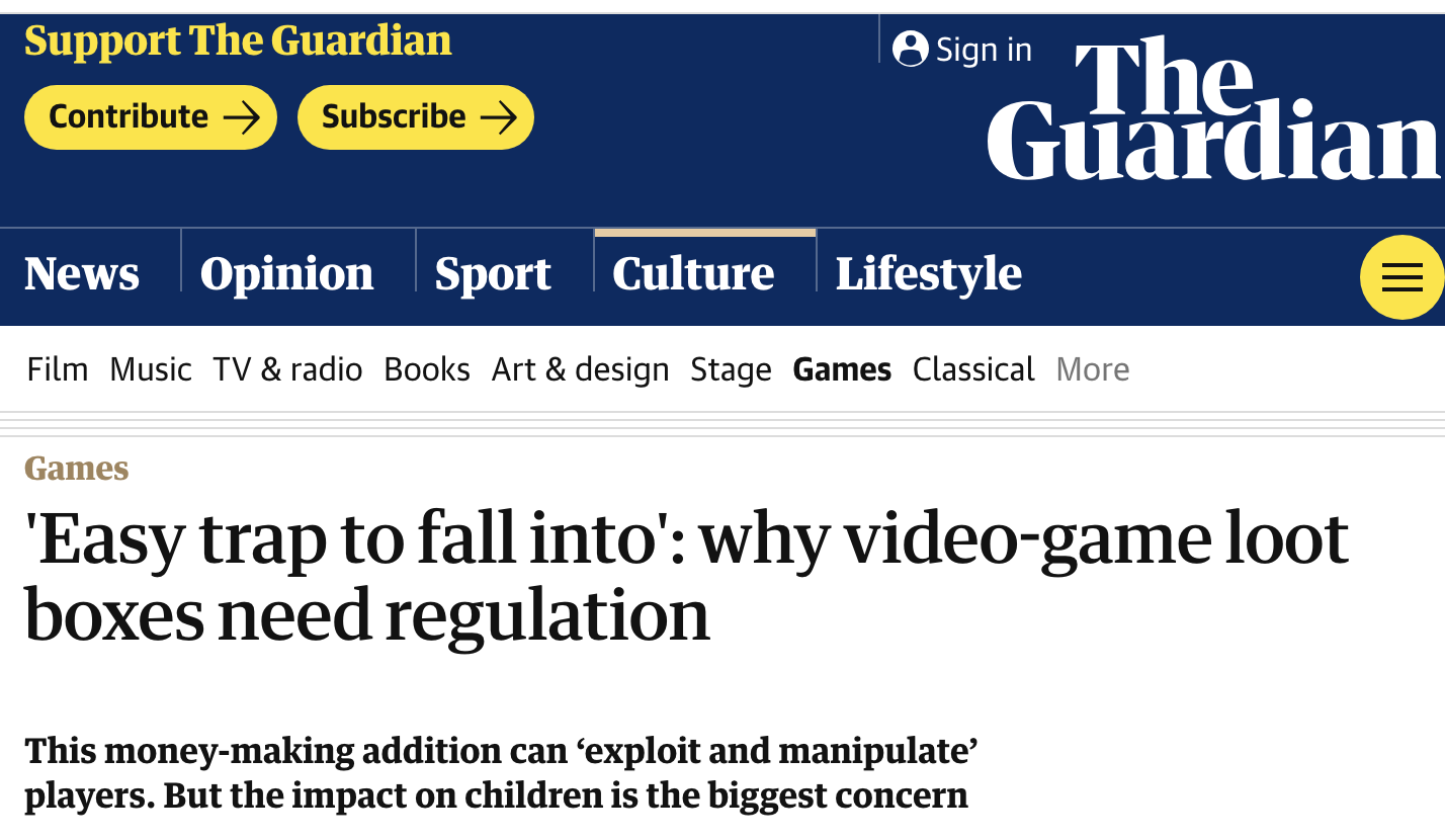 Basically, these loot boxes allow you to spend money to potentially receive rewards. The chatter was about whether these should be considered 'gambling' and regulated accordingly.