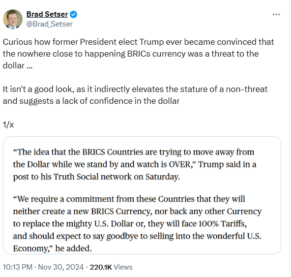 The case for US exceptionalism may well rest on American growth remaining fairly resilient to any blowback from Trump's own policies, such as higher tariffs.