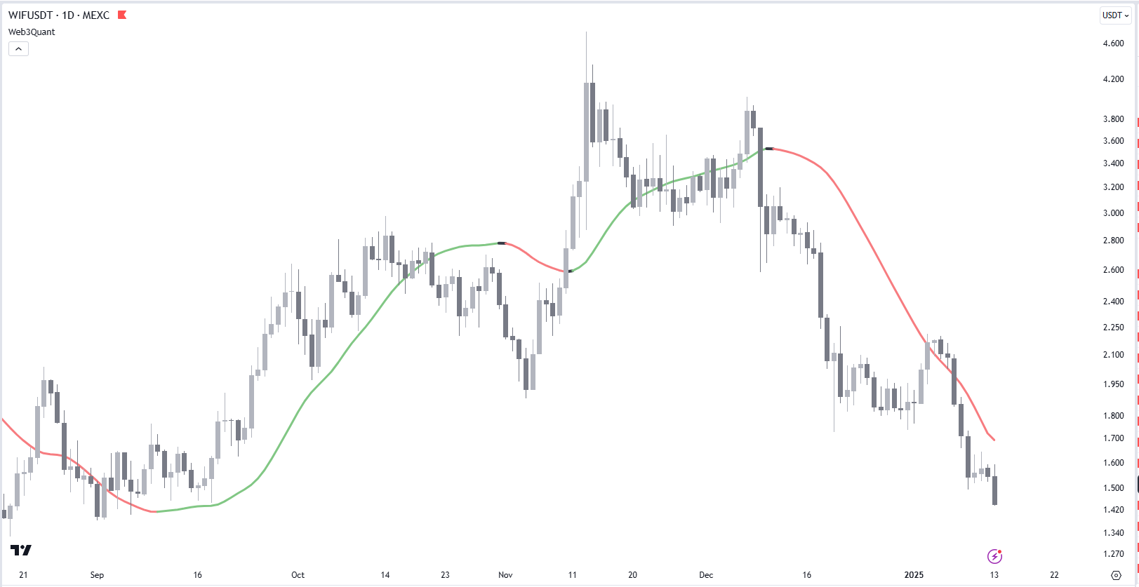 the line works really well on assets with longer price history and allows you to capture the big HTF swings in the market.
