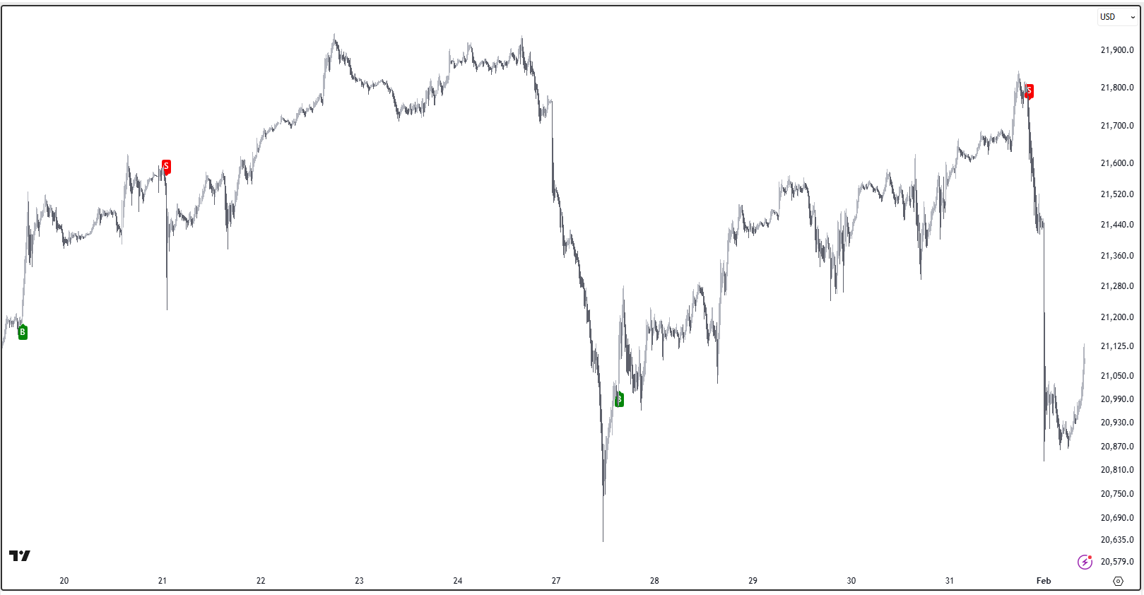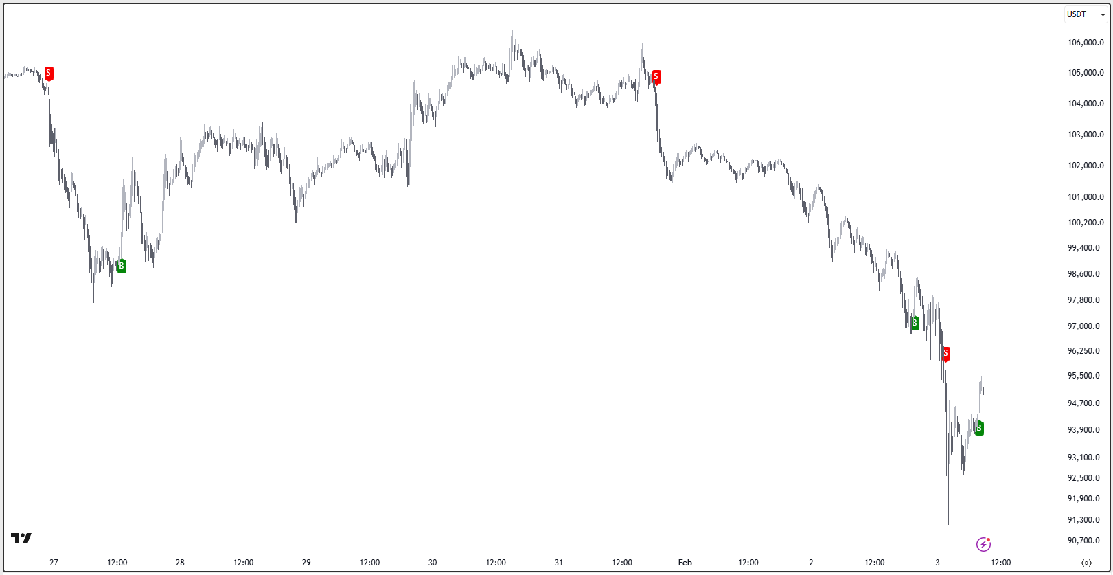 What we have in front of us is price, volume, and flows. Let's see how our systems have done. Starting with the big picture: you can see how when our positional system already indicated that it's turning bearish—for Total Crypto.  Total Crypto While we wait for the big picture to turn favorable, there are plenty of opportunities in the short term. That's when the scalper comes into play. Here's how it's performed recently across very high volume assets and coins: - Nasdaq 100