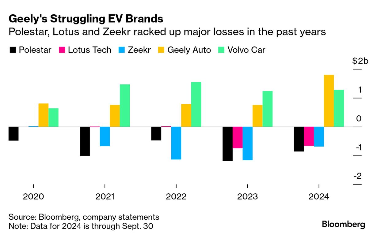 | Thanks for reading Hyperdrive, Bloomberg's newsletter on the future of the auto world. Read today's featured story in full online here. Geely's Cost-Cutting Spree | Li Shufu, the billionaire behind one of the world's largest automobile empires, has been doing some soul-searching. In China, Geely Automobile, which reports earnings on Thursday, is trying to catch up to electric-vehicle leader BYD. In Europe, Volvo is caught in the middle of a trade conflict that's tempered its global ambitions. And in the US, a lucrative market effectively closed to Chinese brands, New York-listed Polestar and Lotus have been reduced to penny stocks. After more than a decade of expansion that started with the acquisition of Sweden's Volvo in 2010, Li is now making cost-cutting the order of the day to stop the hemorrhaging at several of his carmakers. The shift was laid out in a document called the Taizhou Declaration, which called for consolidation, synergies and savings to eliminate redundancies across the group. Li first released it in Chinese, setting out broad terms of a new strategy meant to bolster his companies as EV demand sputters and tariff conflicts threaten sales. "The Taizhou Declaration set forth a lot of changes in terms of organizational structure," said Yale Zhang, the managing director of Shanghai-based consultancy Automotive Foresight. "Keeping so many brands with different marketing and distribution networks, these all add to costs." A Zeekr showroom in Shanghai. Photographer: Qilai Shen/Bloomberg The Taizhou Declaration is similar in intent to the Ningbo Declaration in 2007, which kicked off Geely's acquisition spree. This newer missive is meant to ensure the group's continued long-term growth by increasing internal synergies and making better products, a Geely spokesperson said. But whereas Geely indeed grew after Ningbo — buying Western brands such as Volvo, Lotus and a significant stake in Mercedes-Benz — one of Li's first moves since Taizhou has been to consolidate. In November, he put plans in place to combine two similar brands — Zeekr and Lynk & Co — in a deal valuing the latter at $2.5 billion. The move was meant to create synergies while maintaining mostly independent operations at the front end. According to Zhang, that makes sense. "If there's overlap and competition between brands, that's an unnecessary waste," he said. "Especially in this age of EVs, when advanced driver-assistance and other technologies are going to require huge investment." Geely Chairman Li Shufu. Source: Xinhua News Agency Investor enthusiasm for electric-car stocks was high during Geely's era of expansion. But the EV slowdown has made raising funds increasingly difficult, and that's reflected in the valuation of companies within Li's empire. The total market value of Geely's five main listed entities, which include Hong Kong-traded Geely Automobile and Polestar, has plunged by around $75 billion from their peak. Investors have come to realize there may be a messy middle for EV uptake after satiating early adopters. Swaying more drivers away from combustion-engine cars will require cheaper EVs, better charging infrastructure and likely more government sweeteners. While EV sales are still growing — albeit at a slower pace — that hasn't translated into profits for several of Geely's businesses. Polestar, Zeekr and Lotus reported combined losses of $2.2 billion for the first three quarters of 2024. Volvo and Geely Auto brought in roughly $3 billion over the same period. The Taizhou Declaration, sometimes referred to as Li's Little Red Book, gets its name from the Chinese billionaire's hometown south of Shanghai, where Geely first started as a manufacturer of refrigerator parts. It was conceived as a group effort, with as many as 50 executives writing sections of the draft and liaising with Li as bits were finalized, Geely Auto CEO Daniel Li told Chinese magazine Caijing earlier this year. He may update investors on the strategy shift on March 20, when the carmaker reports 2024 earnings. Polestar, Geely's sporty sub-brand that's deepest in the red, is alsoaddressing its deficiencies. The company presented a new strategy to investors in January after coming off another year where sales fell short of than 50,000 cars — far from the 215,000 forecast in its prospectus three years ago. Polestar electric vehicles at the 2024 New York International Auto Show. Photographer: Bloomberg/Bloomberg At the briefing, Polestar delayed its target of reaching cash flow breakeven by another two years. Bernstein analyst Daniel Roeska expects the company will burn through another $3 billion before then. Polestar also has been moving to a more traditional dealership model after previously taking a Tesla-like approach to retailing. It plans to bring down funding needs by reducing inventory and capital expenditures. CEO Michael Lohscheller sees the carmaker as still adding value to the broader group because it's a relatively established Western brand. "Bringing a Chinese brand to Europe or to the US is not that easy. So to have Polestar is really an asset," he said. Volvo also appears to be taking the Taizhou Declaration to heart. After reporting a drop in earnings for 2024, executives said the focus this year will be on cash preservation. Not only is Volvo facing potential US tariffs, it's also feeling the heat from the European Union's higher levies on made-in-China EVs, which have hit its popular EX30. The electric sport utility vehicle is currently produced in China but will be made at Volvo's factory in Ghent, Belgium, starting this year to sidestep the duties. A Volvo EX30 EV on display at an exhibition last year in London. Photographer: John Keeble/Getty Images Europe If US President Donald Trump imposes additional tariffs also on EU imports, Volvo will have to reassess the economics of producing the EX30 and other models in Europe for export to North America, CEO Jim Rowan said last month. As a group, Geel