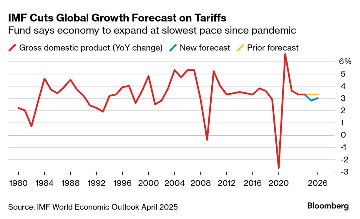 | The rotation by investors out of American assets will go on for years if President Donald Trump persists with his global trade war. This is the warning from a strategist who timed the unwind of so-called exceptionalism almost perfectly. Societe Generale's head of asset allocation Alain Bokobza was a US asset bull for a year up until September 2024, when he warned of cracks in the foundation. He reiterated his call in February, warning investors to slash exposure to US stocks and the dollar. We all know what's happened since. The Trump administration has arguably opened the door for the country's financial dominance to be challenged, with the dollar and Treasury bonds losing appeal in what may be a dire shift of fortunes for America. US equities also have been underperforming global peers this year amid fear that Trump's strategy of tariff chicken will damage growth and stoke inflation. The International Monetary Fund isn't all that amused either, seeing as the rest of the world may become collateral damage to a US crackup. It sharply lowered its forecasts for world growth this year and next, warning the outlook could deteriorate further if the US-initiated trade war escalates. The IMF cut its projection for global output growth this year to 2.8%. That's lower than its January forecast of 3.3% and would be the slowest expansion of gross domestic product since the Covid-19 pandemic arrived in 2020. It would also be the second-worst figure since 2009, in the immediate aftermath of the financial crisis. Together, the warnings add more weight to similar cautions from Wall Street banks in recent weeks, with JPMorgan and Goldman Sachs saying the chances of a recession in the US have spiked. —Jordan Parker Erb Get the Markets Daily newsletter for what's happening in stocks, bonds, currencies and commodities right now—and what will move them next. | |