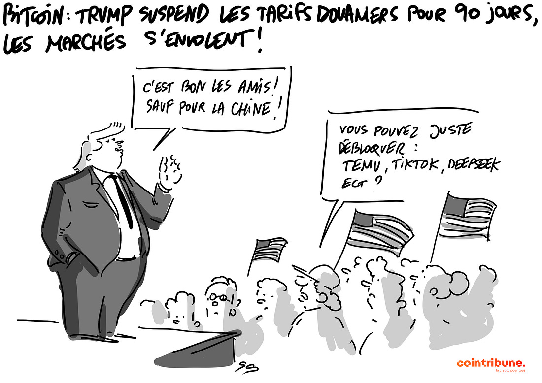 Bitcoin sous tension géopolitique : Entre rebond technique et perspectives haussièresLa semaine a été marquée par un enchaînement d’événements macroéconomiques qui ont directement impacté les marchés financiers globaux, y compris les cryptomonnaies. Alors que les investisseurs cherchaient des signaux de stabilité dans un environnement incertain, une déclaration inattendue du président américain Donald Trump est venue raviver l’optimisme. Le Bitcoin, en particulier, a réagi positivement, franchissant un seuil technique clé. Suspension des tarifs douaniers : un catalyseur macroéconomique inattenduLe 9 avril, Donald Trump a annoncé la suspension des tarifs douaniers pour une durée de 90 jours. Cette initiative a provoqué un rebond immédiat sur les marchés traditionnels — et n’a pas tardé à se répercuter sur les actifs numériques. Le Bitcoin a ainsi bondi à plus de 82 000 dollars, enregistrant une hausse de 8,25 % en seulement quelques heures. Une dynamique technique ambiguë : simple rebond ou amorce haussière ?Malgré cette progression impressionnante, les analystes restent divisés. La configuration actuelle pourrait signaler une cassure haussière de long terme, mais certains indicateurs laissent entrevoir la possibilité d’un « dead cat bounce » — un rebond technique sans suite. Les prochains jours seront déterminants : un maintien au-dessus du seuil des 82 000 dollars, accompagné de volumes soutenus, conforterait l’hypothèse d’un changement de régime. À l’inverse, un retour sous les 80 000 dollars pourrait remettre en question cette reprise. Conclusion : vers une revalorisation structurelle ou un simple sursaut ?Bien que le signal envoyé par les marchés soit encourageant, il ne constitue pas encore une garantie de tendance durable. Dans un contexte marqué par l’incertitude géopolitique et les fluctuations réglementaires, la vigilance reste de mise. Le Bitcoin pourrait bien amorcer un nouveau cycle — mais il devra d’abord confirmer sa solidité technique et fondamentale. |