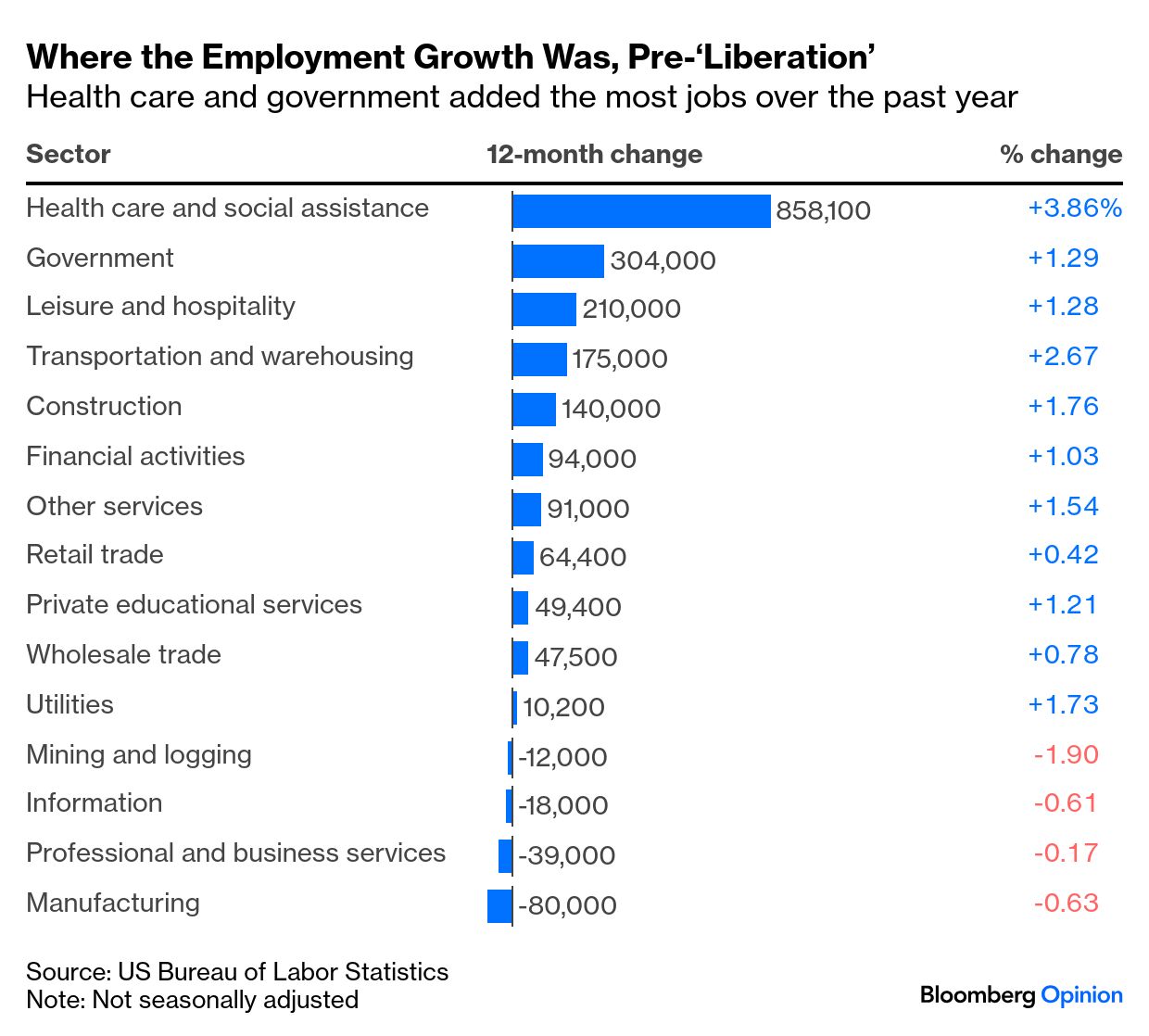 Curious to hear how it's used in a sentence? "If you're Loomered, you're in deep trouble. That's the end of your career in a sense," said President Donald Trump. I wonder, will "Loomered" and "Loomering" end up in the Dictionary like those other verbs? It's possible, although her name won't be remembered kindly. "Having botched two runs for Congress, she's instead a failed politician better known for her sycophantism toward Trump," Andreas writes. "She had his ear again last week in a meeting in the Oval Office, where, like a Spanish Inquisitor of the TikTok age, she accused a raft of national-security experts of disloyalty toward Trump, prompting the president to have them fired." Photo by Anna Barclay/Getty Images It's hard to overstate how strange it is that a so-called "investigative journalist" is directing the president to fire respected members of the NSA and US Cyber Command community. Under normal circumstances, you'd expect the national security adviser to intervene, but after the Signal group chat disaster, Andreas says Michael Walz himself is on the chopping block. Loomer isn't the only chronically online Republican invading the White House's inner circle. "She represents a rising demographic of more-or-less loony right-wing influencers who are famous just for being famous — and for being able to get near the president," Andreas writes. For instance, Libs of TikTok creator Chaya Raichik dressed up — tactical vest, ICE badge and all! — for a ride-along with Homeland Security Secretary Kristi Noem yesterday: I didn't know we had a Bring Your Favorite Influencer to the ICE Raid Day! "Last week's employment report offered what may be the last clear picture of the US job market before President Donald Trump's tariff shock. Overall, it looked pretty healthy, with a 4.2% unemployment rate, 80.4% of the prime-age population employed and 1.9 million nonfarm payroll jobs added over the past 12 months," writes Justin Fox. At the top of the chart, you'll notice a LOT of jobs in health care. He points to the uptick in the 65-and-older population — from 31 million in 1990 to 59 million as of 2023 — as a big driver. "Female founders have been in the headlines lately — though perhaps not in the way they'd prefer," says Beth Kowitt. Startup founder Charlie Javice could get 30 years in prison after being found guilty of fraud for misleading JPMorgan. And Christine Hunsicker — CEO of fashion tech startup CaaStle — has stepped down after alleged financial misconduct. What in the Elizabeth Holmes is going on? "Female entrepreneurs get outsized attention on the way up as well as on the way down," she writes. These public episodes make it that much harder for women to be credible in the corporate world. Join Us for a Conversation on China | President Trump is raising tariffs on Xi again, blaming "the lack of respect that China has shown to the World's Markets." The question is: Who will blink first in the trade war? Join Bloomberg Opinion's Ruth Pollard along with columnists Shuli Ren, Karishma Vaswani and Catherine Thorbecke for a Live Q&A on Bloomberg's website. As Taiwan's leader, I believe we can strengthen trade with the US. — Lai Ching-te No matter what the White House says, all those Supreme Court rulings aren't "wins." — Stephen L. Carter US consumers are now blocked off from some of China's most fashionable brands. — Shuli Ren US government debt is the world's benchmark for a reason — and that hasn't changed. — Marcus Ashworth What rights do immigrants have? Trump hates a low-pressure shower. Hobby Lobby is getting crafting in NYC. Zillow is about to lose a lot of listings. Thank God for Lorde. Meet me at the Twilight concert. Chips are getting meatier. Vibestaurants can disappoint. Fortnite accents are tough to lose. |