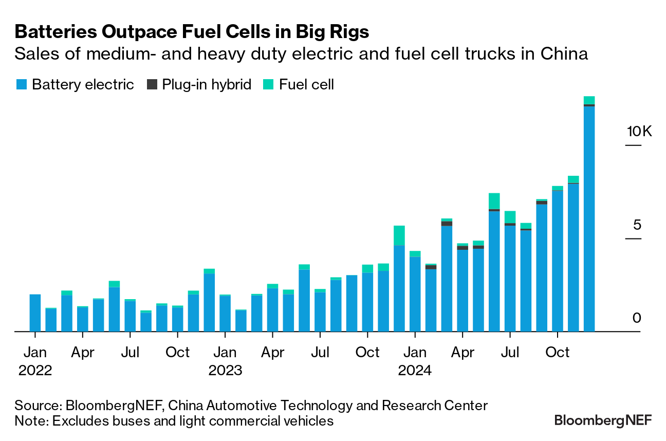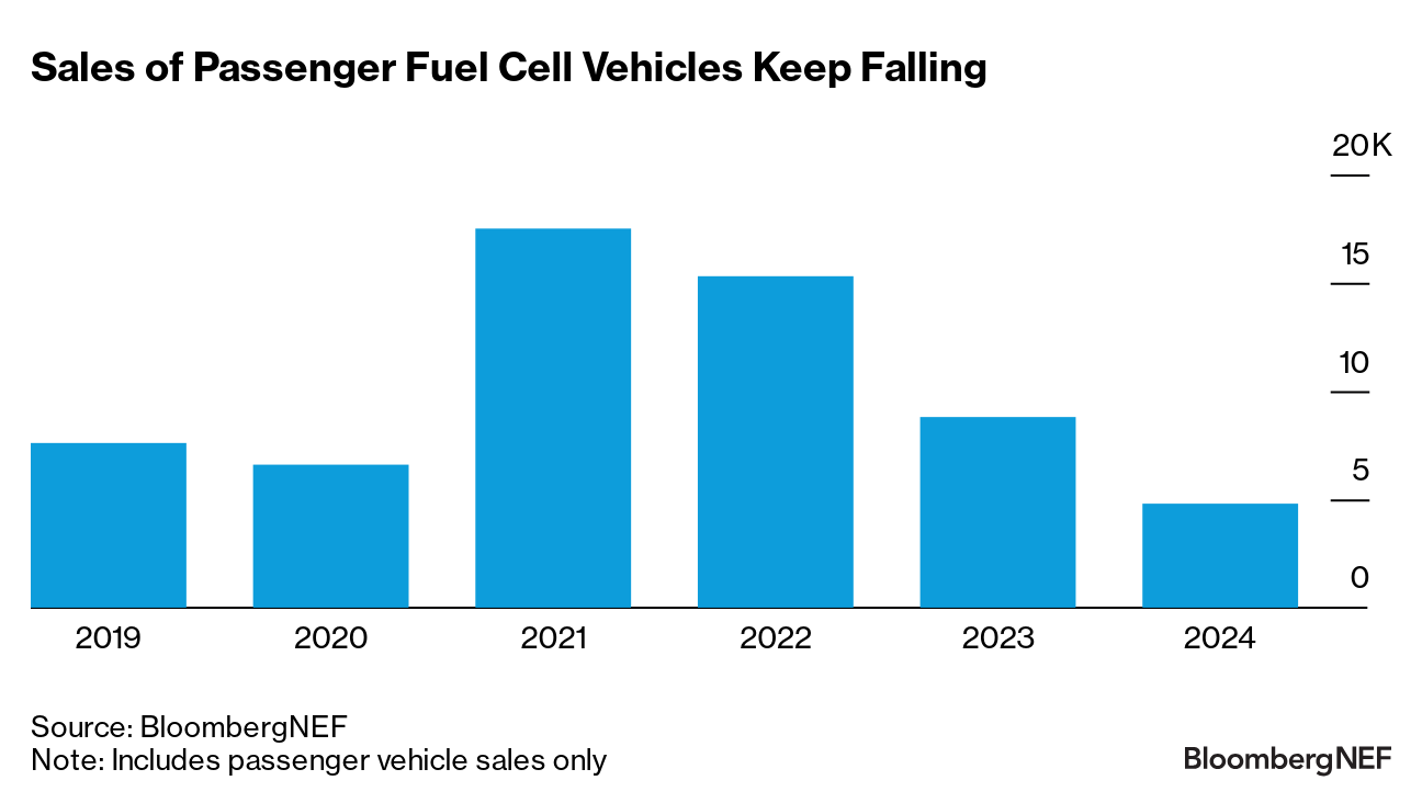 | Thanks for reading Hyperdrive, Bloomberg's newsletter on the future of the auto world. In clean energy, certain technologies come and go. The idea of using hydrogen to power vehicles reliably waxes and wanes every 10 years or so. A growing list of hydrogen fuel cell trucking bankruptcies the last few months indicates another cycle is ending. Trucking was supposed to be the most promising application for hydrogen fuel cells, but startup truckmakers Nikola, Hyzon Motors, Quantron and Hyvia all went under or ceased operations in the last six months. Despite generous incentives available in some markets, these companies struggled to scale up and cover costs. Nikola, for instance, lost more than $900,000 per truck sold, delivering just 250 fuel cell trucks by the third quarter of last year. The others didn't make substantial deliveries. Fabric draped over a Nikola Tre fuel cell truck before its unveiling at the IAA Transportation show in Hanover, Germany, in September 2022. Photographer: Krisztian Bocsi/Bloomberg Truck manufacturing is challenging, and several companies focused on battery-electric trucks or buses, like Arrival and Proterra, also went under in the last few years. But makers of fuel cell trucks face additional challenges, including the still-high cost of hydrogen, the lack of standardization and sparse infrastructure. These dynamics have played out in previous waves of excitement around hydrogen for road transport, as the realities of cost, efficiency, distribution and infrastructure requirements all eventually reassert themselves. The story on the passenger vehicle side is similarly negative. A total of 4,800 hydrogen fuel cell passenger cars were sold globally last year. That was down from 8,800 in 2023 and over 15,000 the year prior. It's also fewer vehicles than rarefied brands like Ferrari, Lamborghini or even Rolls-Royce delivered last year. Just a few years ago, Toyota claimed that it alone would be producing 30,000 fuel cell vehicles a year by the early 2020s, and a Hydrogen Council report predicted 30 different fuel cell models would be in production by 2025. The actual number was much lower, with five models in some level of commercial manufacturing. None have reached the economies of scale needed to bring costs down. Even Toyota sounds less certain these days, with chief technology officer Hiroki Nakajima stating at the end of last year that he "can't say for sure that it's a bright future for hydrogen." All this negativity hasn't stopped governments from trying to push the technology. The European Union's Alternative Fuel Infrastructure Facility published its latest round of winners in February, awarding €422 million ($455 million) in new grants. Hydrogen projects have now received 24% of the total €1.8 billion awarded through the program, despite there only being 5,000 fuel cell vehicles on European roads. That amounts to €78,000 in infrastructure spending per fuel cell vehicle in circulation, compared to just €86 per electric vehicle, a recent BloombergNEF analysis shows. China's heavy truck market is changing very quickly and is one of the few where hydrogen fuel cell vehicles have gained a toehold. Still, it's a tenuous grip. A total 3,900 fuel cell trucks were sold in China's medium and heavy-truck segments last year, compared to 75,000 electric ones. China consistently has the power to surprise, but in the rest of the world, it's getting harder to see what could reverse this trend. As hydrogen's potential role in road transport narrows further, more names may fall by the wayside. US President Donald Trump. Photographer: Al Drago/Bloomberg US automakers are making a last-ditch effort to sway the Trump administration on tariffs set to take effect this week, contending that levies on the thousands of parts they source abroad could have catastrophic effects on the industry. Ford, GM and Chrysler parent Stellantis are lobbying the administration to exclude certain low-cost car components from the planned tariffs, according to people familiar with the matter. Executives have met with the White House, the Commerce Department and the office of the US Trade Representative to discuss the exclusion, said the people, who asked not to be identified revealing internal discussions. |