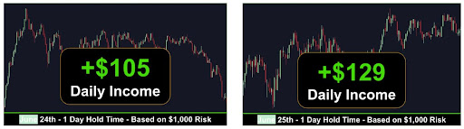 Two days. Two setups. Two paydays of $105 and $129, respectively.