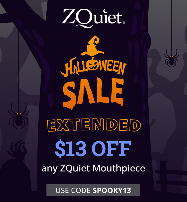 Banish The Real Monster In Your Bedroom | | Forget ghosts, forget ghouls - the scariest thing in your bedroom tonight might be your own snore. It rattles walls. It haunts dreams. It strikes fear (and frustration) into anyone within earshot. But good news: this story has a happy ending. We've extended our Halloween Sale, so you can still save $13 on any ZQuiet mouthpiece with code SPOOKY13