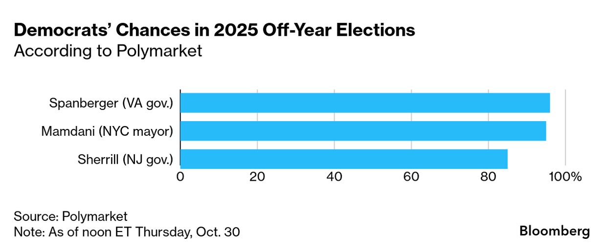 | In an off-election year, US political junkies have few places to look for signals about where the two parties are headed. The first (and only) opportunity in 2025 for this reading of the tea leaves happens on Tuesday, when voters in New Jersey and Virginia will elect a new governor and New York City residents will vote for a new mayor. Anyone looking for a clear takeaway from these contests may be disappointed. New York is on the verge of electing Zohran Mamdani, a Democratic socialist in the vein of Senator Bernie Sanders and Representative Alexandria Ocasio-Cortez — the type of progressive whose policies are unappealing to many of the centrist and independent voters needed to win national elections. The New Jersey and Virginia gubernatorial races, by contrast, are test cases for another type of Democratic candidate: the centrist, experienced, national-security-minded female politician. The race in New Jersey has tightened in the past few weeks between Democratic Representative Mikie Sherrill and Republican Jack Ciattarelli, as voters express dismay over high electricity bills and general affordability issues under the state's current Democratic governor. Republicans would love to eke out a victory there — even as polls narrowly favor Sherrill — after President Donald Trump endorsed Ciattarelli and called him "100% (PLUS!)" on the MAGA agenda. In Virginia, Democratic Representative Abigail Spanberger looks likely to prevail over the Republican Lieutenant Governor Winsome Earle-Sears. The huge number of federal workers in Northern Virginia, frustrated by the government shutdown and the DOGE cuts, gave Spanberger a built-in constituency. And she's made sure to talk about issues key to local voters — inflation, schools, health care — rather than solely going with an anti-Trump message. If Democrats lose one of these races, expect even more hand-wringing over the party's tarnished national brand and its inability to capitalize on Trump's unpopularity. Convincing wins by Spanberger and Sherrill would be seen by centrist Democrats as vindication of their experience-plus-cost-of-living approach. But don't expect the progressive wing of the party to agree; they see in Mamdani an authenticity and a populist economic message that resonates with many voters. This slate of elections is unlikely to resolve this divide. What seems most evident is that voters continue to reward politicians of both parties who seem authentic and speak about the issues that pertain to their daily lives — rather than supporting a singular, cookie-cutter type of candidate. Meanwhile, the Democrats just can't seem to escape the ideological wilderness. — Nancy Cook, Bloomberg News | |