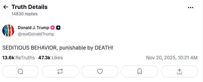 Among the list of second-term triumphs, we can add the current president's most astonishing feat: Destroying the rule of law. Consider his Truth Social post responding to Democratic members of Congress — all veterans of the military or intelligence agencies — who made an ad informing current service members: "You can refuse illegal orders." "For weeks, military service personnel have been seeking outside legal counsel about orders they've received, especially the US strikes against alleged drug boats and the military deployments to American cities," Mary Ellen writes. "If Trump is disturbed by the reaction to his decisions, he should be. But the best response is not to seemingly call for the execution of members of Congress, but to reconsider how he ought to use the world's most powerful military." Trump's unapologetic use of the military is just part of a larger cycle, says Noah Feldman. "The most astonishing feature of Donald Trump's decade as one of the most dominant figures in American politics is his ability to make the unthinkable seem not only thinkable, but possible," Noah writes. "First, Trump floats the idea of breaking some fundamental principle of politics — something so basic to eighth-grade civics and to our collective political imagination that it seems laughable. Then, supporters ... start insisting that it is not only possible but inevitable. The rest of us — whether we are constitutional law professors (guilty), pundits (ditto), or simply committed citizens — start talking about the outrage." Yeah, Americans love to debate politics, it's a benefit of living in a free society. But a constructive exchange of views is pretty impossible if one side follows a guy who insists shoplifting is legal in California and we're being overrun by Congolese prisoners. "In the most troubling part of this process, the outrage and ensuing debate themselves become a powerful normalizing force," adds Noah. "The debate over what was once unthinkable begins to seem like an ordinary and legitimate political argument, one in which we are accustomed to each side winning occasionally, either through elections or in court. And therein lies the subtle danger: What we once considered unthinkable has gradually become part of our political imagination." A president serving a third term was also unthinkable, until Trump started throwing the unconstitutional idea around with a bunch of folks who love the Second Amendment. Let's hope the idea doesn't become normalized: It would shred the Constitution, upend 80 years of political tradition, and be very confusing for humble newsletter writers on the hunt for lame ducks. Note: Please send Duck Soup and feedback to Tobin Harshaw at tharshaw@bloomberg.net |
