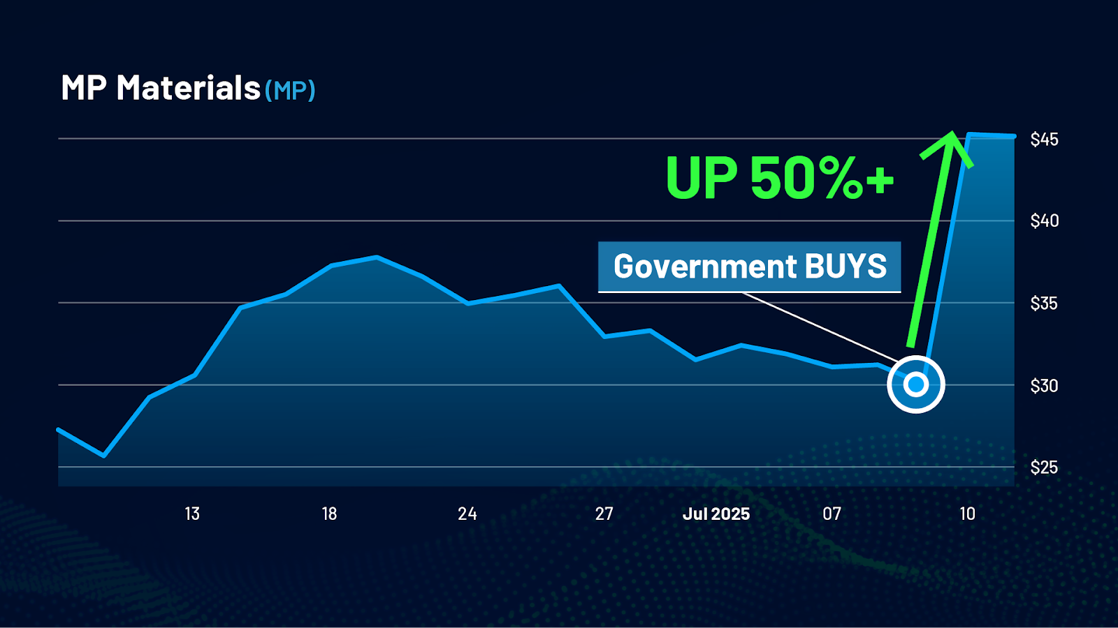 In fact, I want to give you the names and tickers of dozens of stocks political insiders are likely to target next, using the very same information that helped me get my followers into MP Materials before exploded 100% higher.