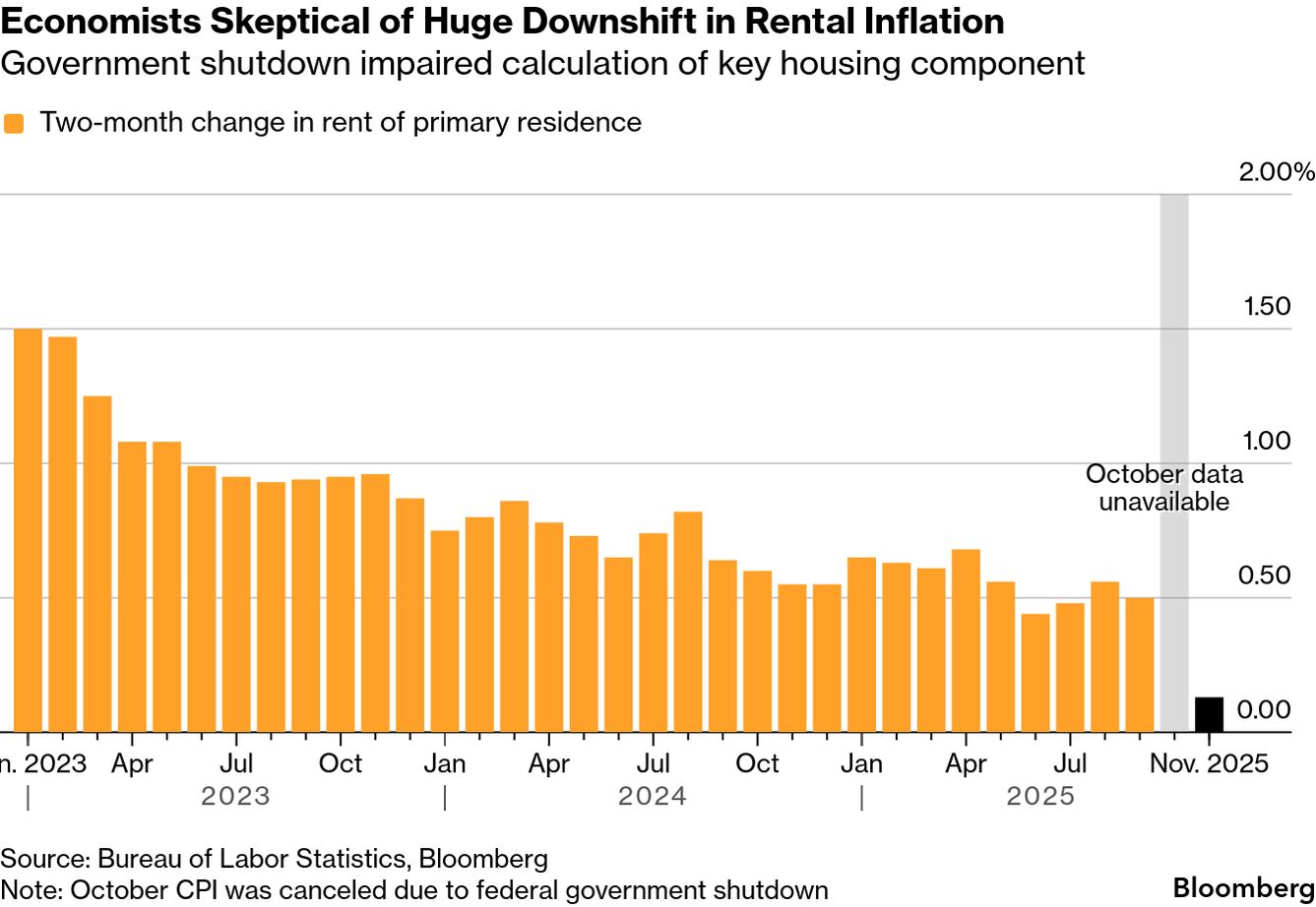 | The titles of analyses of today's inflation numbers from the Trump administration included "Lost in Translation" from TD Securities, "Delayed and Patchy" per William Blair and "Swiss Cheese CPI report" from EY-Parthenon. In the aftermath of the Trump administration's decision to cite a government shutdown as reason not to issue data, the president's comments that any affordability crisis is a "hoax," and simmering concern over his August firing of the head of the Bureau of Labor Statistics, long-awaited data from the agency was released Thursday. It stated that US inflation, which has been rising for much of the past year, cooled to a four-year low last month. The so-called core CPI, which excludes food and energy, increased 2.6% in November from a year ago—the slowest pace since 2021, the BLS said. That also happens to be below every estimate in a Bloomberg survey of economists. Some economists seem to agree on something else: the numbers are off. Indeed, inflation in several categories that had long been stubborn seemed to nearly evaporate, according to the government. Chief among those were shelter costs, which make up about a third of the consumer price index, but other categories like airfares and apparel notably declined. Several forecasters pointed to the absence of October data—which resulted in pages of blank spaces in the widely watched report—as effectively the same as assuming no price growth for the month. That culminated in sizable downward pressure on the November inflation figures, they said. Some noted the shortened collection period could have also skewed the data. "This one-of-a-kind report produced anomaly after anomaly, almost all pointing in the same direction," Stephen Stanley, chief US economist at Santander US Capital Markets, said in a note. "I think it would be unwise to dismiss the results entirely, but I also believe it would be rash to take them at face value." —David E. Rovella |
