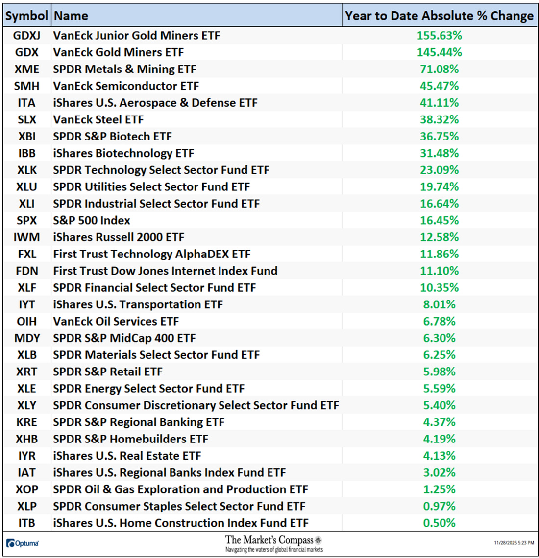 The Market's Compass US Index and Sector ETF Study