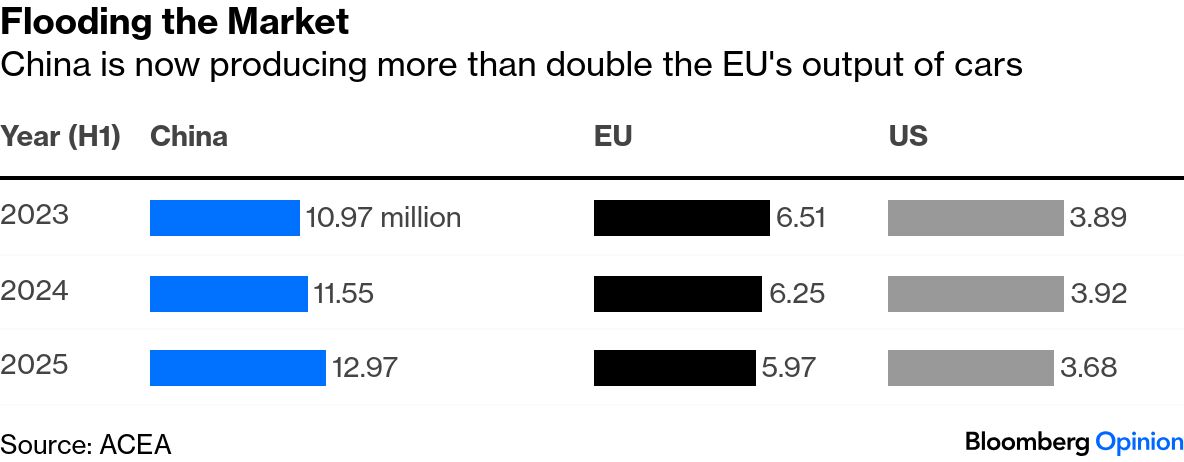 | This is Bloomberg Opinion Today, the worst excesses of an ongoing price war of Bloomberg Opinion's opinions. On Sundays, we look at the major themes of the week past and how they will define the week ahead. Sign up for the daily newsletter here. My introduction to daily life in China came from two historical novels that were considered musty even in the long-ago days of my teens. One won a Pulitzer Prize in 1932, the other was awarded its French equivalent, the Prix Goncourt, a year later. But aside from success in a couple of rigged contests, the books didn't have much in common. France's contribution, Man's Fate, is AndrĂ© Malraux's depressing slog through a short-lived 1927 communist uprising in Shanghai; and as you can guess, most of the characters are short-lived as well. [1] Pearl S. Buck's The Good Earth is an engrossing melodrama of the rise and fall of a peasant family from the 1880s onward. It has achieved a sort of double affirmation in my mind, having been banned in Communist China as an embarrassing symbol of imperialism, and pushed to the curricular margins by America's liberal elite under similar judgment. [2] Malraux had never set foot in China before writing his novel. [3] Buck knew a lot about the country, having spent the first three decades of her life in Zhenjiang and Nanjing with her missionary family. [4] But among the sophisticates, it seems, total unfamiliarity of a put-upon nation is far preferable to vast personal experience tainted by Christianity and colonialism. [5] Where am I going with this? I tend to write about contemporary China in terms of a great geopolitical rivalry, in which Xi Jinping plays the bad guy (with Russia's Vladimir Putin as his sidekick) and Western leaders play the bumbling, fumbling good guys who you just know (hope??) will eventually get their act together. It makes my perspective a bit like Malraux's, viewing a rising China from afar, through the lenses of politics and moral relativism. So I cede the field today to the bevy of Bloomberg Opinion columnists on the scene, who understand what is going on with the Chinese people. Like, for example, their fashion sense — or nonsense: "The country is in the midst of a wellness boom, offering a rare bright spot in an otherwise struggling retail sector — and lessons for luxury players trying to reconnect with their most important market. The rise of the 'Gorpcore' aesthetic is emblematic of this trend," explains Juliana Liu. "Fashionistas sporting this look wear functional outdoor clothing as streetwear. Even though China was late to embrace this phenomenon, it has adopted the concept and moved it firmly into the mainstream." "One example is a viral meme that translates to 'one bird, two trees, and three roads.' It describes the respective logos of a trio of high-end outdoor brands — Arc'teryx, Kolon and Descente — that are considered workplace must-haves for professionals," adds Juliana. "All three labels are controlled by Anta Sports Products Ltd., China's biggest activewear maker with a rags-to-riches origin story as a provincial shoe seller." Rags to riches? The folks at Anta might want to read The Good Earth as a cautionary tale. Meanwhile, China's supercharged carmakers hardly seem to be in danger of heading back into the "rags" part of the cycle — but will their ambitions be as long as their roads? "China's car market is becoming saturated. With sales set to decline in the coming year, it's no surprise that homegrown automakers are looking to redouble their efforts overseas. But in order to remain welcome in their host markets, they should localize production and avoid the worst excesses of an ongoing price war at home," Juliana writes in a separate article. "The consequences have reverberated throughout the supply chain and reduced the profitability of the entire ecosystem, including parts makers. It was the right move for Beijing to step up regulatory scrutiny last week by announcing a proposal to crack down on selling vehicles below cost. However, more regulation won't be enough to fix the underlying problem of too much supply and not enough demand." With a glut at home in cars (and most things industrial) China needs to look elsewhere for markets. President Donald Trump's America isn't very inviting all of a sudden. So how about a little revenge on the continental colonialists? "European Union carmakers like Volkswagen AG got their wish this week when a combustion-engine ban for 2035 onward was effectively abandoned. It was seen as too ambitious, too costly and a dream for Chinese rivals, whose electric-vehicle head start (powered by subsidies) has given them a 7% share of the continent's autos market. Faced with a choice between climate leadership and protecting jobs, the EU chose the latter," writes Lionel Laurent. "While it's true that the ban failed to spark a true European EV boom, dumping it is nowhere near enough to secure the industry's future. It won't solve Chinese competition. Worse, ditching it sends a signal that carmakers can comfortably take their foot off the investment accelerator. That's the wrong message." Minxin Pei points out that the West's disadvantages stem from a decades-old mistake. "The US blundered in hoping to convert China into a liberal democracy through free trade" he writes. "For the past four decades, the Chinese Communist Party never disguised and never deviated from a long-term strategy focused on economic development — precisely in order to strengthen one-party rule at home and increase China's influence abroad. Economic reforms served to rejuvenate totalitarianism, not to weaken it." His advice for countering China's manufacturing ascendancy and geopolitical rise: If you can't beat 'em, join 'em. "Rather than lamenting that fact or criticizing previous American leaders for not recognizing China's strategy sooner, the US ought to mimic it to strengthen its own economic and political system. Imitation wouldn't be flattery but the 