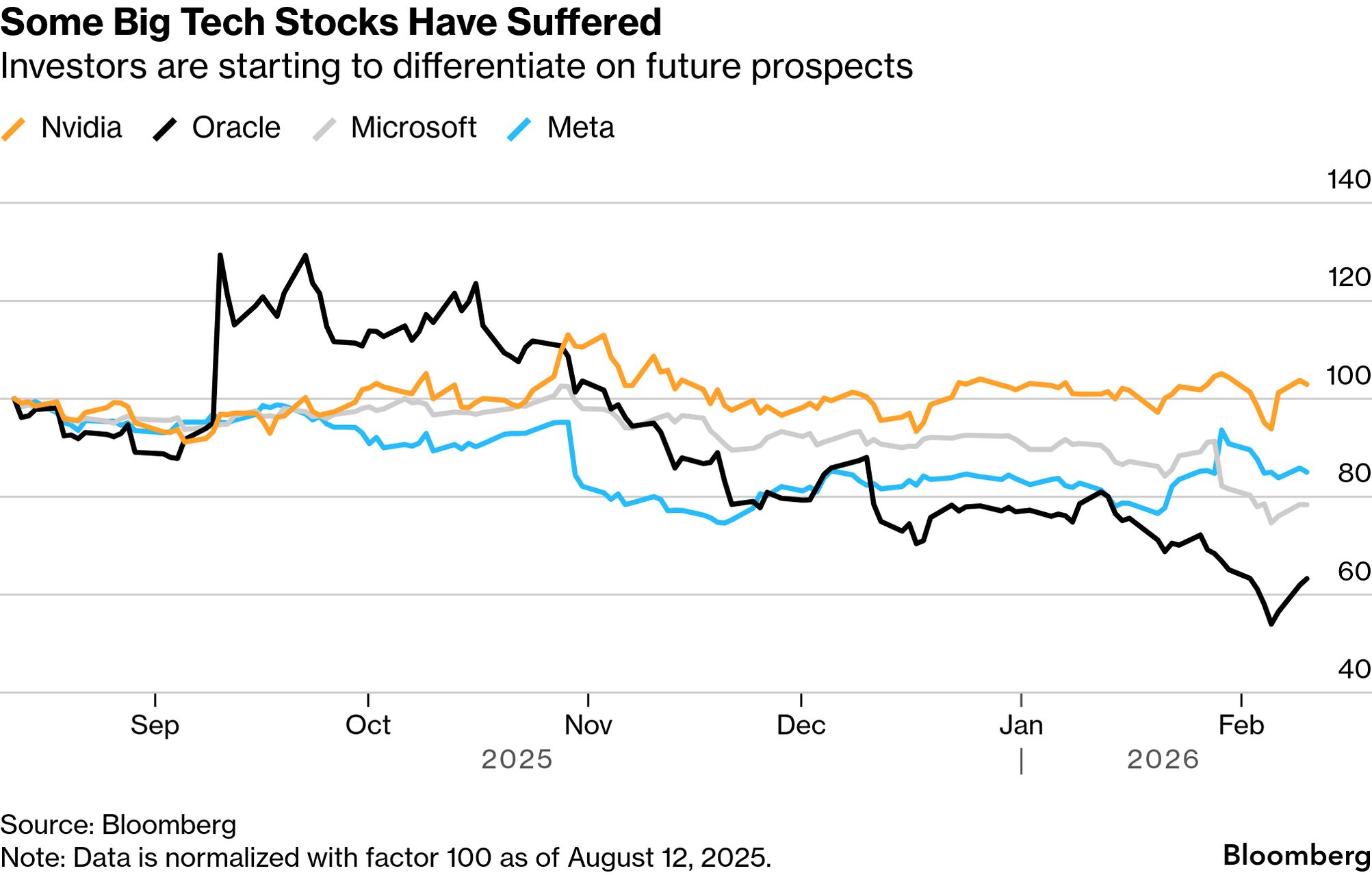 Why are they raising so much debt?Big Tech companies are cash-flow machines that dominate the list of most valuable publicly-traded companies. This helps the technology industry get billed as light on capital needs with so much operating leverage that revenue from new customers mostly falls to the bottom line as profit, fattening margins and rewarding shareholders. ![]() Artificial intelligence changes that. Alphabet, the parent of Google, plans to make $175 billion to $185 billion of capital investments this year. Collectively, Alphabet, Amazon, Meta, and Microsoft plan to spend $500 billion in 2026 on AI investments alone. This unprecedented splurge promises to turn the model of software companies as capital-light firms upside down. Investors have noticedInvestors are officially worried. When AI first caught investors' attention, Big Tech was rewarded because of the transformative potential the technology has on everything we do. Stocks briefly paused their rally in 2024 over recession jitters but they resumed their ascent in the first half of 2025. Take Nvidia, for example. From a low of $11.21 just before ChatGPT went public in late 2022, the company's share price rose over 18-fold in just three years. ![]() Over the last half-year or so, as the scale of investments has become clear — and Big Tech's balance sheets have deteriorated — investors have begun to punish the firms with the largest AI risk profiles and the highest debt loads. Their shares have underperformed as a result and even Nvidia has stalled. ![]() Oracle's caseAt the end of last year, I pointed to Oracle as the poster child of this transformation. Seven years ago, the company had over $70 billion in cash and cash equivalents on its balance sheet to offset its almost $60 billion in long-term debt. That was a 25% cushion of cash over debt. By the quarter that ended in November, Oracle's cash pile was down to just $11 billion and long-term debt had ballooned to $96 billion, a shortfall of monumental proportions. Yes, Oracle finished the most recent quarter with $19 billion in cash. But it did so by raising gobs of debt that swelled its long-term liabilities to $116 billion. The stock's performance is telling. ![]() The stock popped 36% on a single day in September - the largest since 1992 for the firm - after Oracle signed a deal with ChatGPT's parent OpenAI to supply 4.5 gigawatts worth of data center capacity. Its founder Larry Ellison briefly became the richest person in the world. But the resulting debt binge made investors look closer at the company's balance sheet and the bottom fell out of the shares, cutting the price in half. The missing AI IPOMore recently, Alphabet is making the headlines. Google's parent ended up raising more than twice as much money as it planned originally, with a $32 billion offering that includes a rare 100-year bond — the first since 1997 in the heyday of the Internet bubble. While the success of the offering assuaged some investor concerns about the increasing use of debt and helped boost shares of laggards like Oracle, it raises questions about the market's ability to absorb massive stock offerings from unlisted — and untested — AI players. OpenAI, Anthropic and Elon Musk's xAI have all indicated plans to go public. It's telling that when Microsoft reported earnings last month and its stock lost $440 billion in market value on a single day, among the biggest investor concerns was that just under half of the company's $625 billion in obligations for future cloud computing contracts were tied to OpenAI. A pure play IPO — a central player that's emblematic in the business and where investors can channel their hopes and dreams — has been missing from the AI bubble. But because of the debt now involved in AI, fear is driving much of investor sentiment and may hurt those companies' IPO prospects. Big tech is no longer asset lightIn the end, debt isn't going to break a company like Alphabet. It's a tool they are using to preserve cash. But it does call into question whether these companies deserve the rich valuations they have garnered. You're paying nearly 30 times earnings for Alphabet for a low double-digit growth rate, helping boost the S&P 500's own price/earnings ratio to 26 times. You pay just over 18 times for the European Stoxx 50, a discount of 40%. When the companies most responsible for creating that disparity are transforming themselves from asset-light software businesses into asset-heavy firms competing fiercely in a new technology with unpredictable outcomes, investors aren't going to pay a premium for American stocks. And suddenly, the rationale for US outperformance evaporates. Things on my radar