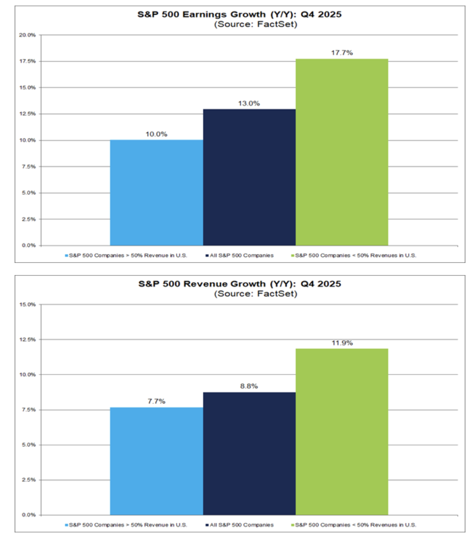 | As the fourth-quarter earnings season comes to an end, the evidence of a full-blown rotation is unmissable. Extreme concentration had created this; the top 10 US stocks make up 39% of the S&P 500 compared to 26% at the peak of the dot-com bubble. The market seemed overdue for a broadening out. That's happened in the last few weeks. One way to gauge the scale of the rotation is through the Russell 1000 Value Index, which has opened a big lead over the equivalent Growth Index since mid-December: But market concentration isn't primarily about share-price valuations; rather, it's been driven by unbalanced earnings growth. Since the end of 2022, the largest 10 companies in the S&P 500 have accounted for about two-thirds of the index's overall EPS growth. During the dot-com bubble, they accounted for around one-quarter, according to Capital Economics. The tech sector's dominance has been total: Barring a profound change in the US economy, such clustered profits cannot continue. For the rotation to be sustained, they need to widen. Bankim Chadha of Deutsche Bank AG notes that this season growth has extended beyond the mega-cap tech companies: Overall earnings growth nudged higher to a 4-year high (14.5%), and the number of sectors with positive growth rose again to 8 out of 11, up from 6 in Q3. Nearly half the companies grew at double-digit rates, with the median growth rate close to 10%, also the highest in 4 years.
