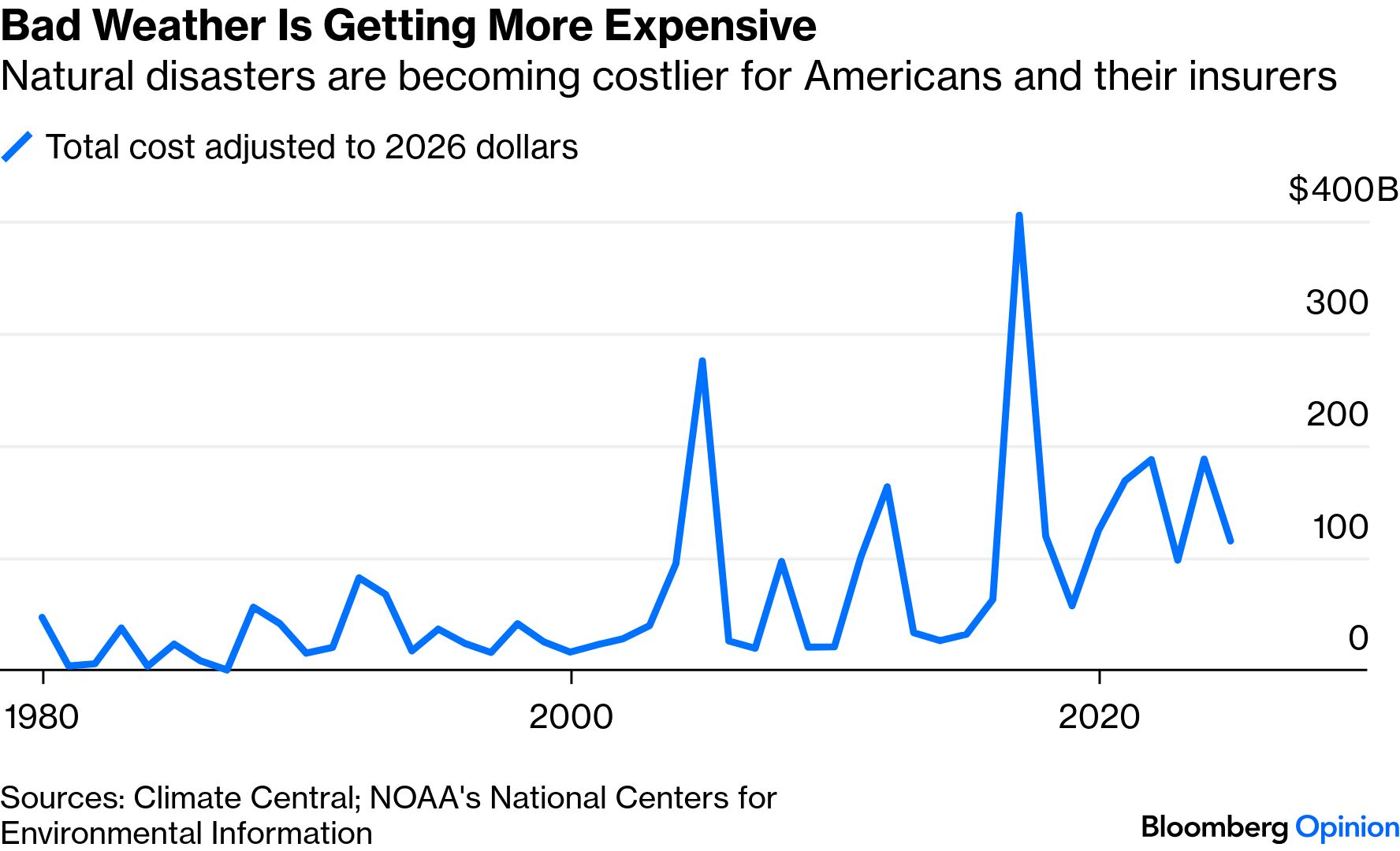 | This is Bloomberg Opinion Today, the biblical kind of awe of Bloomberg Opinion's opinions. On Sundays, we look at the major themes of the week past and how they will define the week ahead. Sign up for the daily newsletter here. This week I am going to attempt the impossible, or at least the highly improbable: Writing a readworthy newsletter about insurance. But first, there is this bit of insanity, via the New York Times: "President Trump on Thursday announced he was erasing the scientific finding that climate change endangers human health and the environment, ending the federal government's legal authority to control the pollution that is dangerously heating the planet." Welp, that was easy. The only surprise is that it took so long. I mostly understand the political divide in Washington here: Coal and oil and gas companies overwhelming support Republican candidates. (Increasingly, so do renewable energy companies, because the public trough runs along both sides of the aisle.) The partisan divide outside the capital is less straightforward: There is a serious body of evidence showing that MAGA followers are net losers in kneecapping clean energy. So what might make those EverTrumpers look more closely at the facts? Their insurance premiums, natch. "Insurance companies live in a parallel universe where greenhouse gases are heating the atmosphere and intensifying natural disasters, harming human health, destroying property and raising insurance costs," writes Mark Gongloff. "The US government's universe is an increasingly lonely fantasy world. You're trapped in the real one." The phrase "you may not believe in climate change, but your insurance company does," may be a cliché, but like most clichés it contains a good amount of truth. "The cost of insuring a US home has jumped 69% in just the past six years," reports Mark. "In several Midwestern and Southern states, insurance premiums account for 6% or more of household income." Climate isn't the only reason your electricity bill is soaring, the Bloomberg Editorial Board notes. "As policymakers of both parties have made housing affordability a top priority in recent years, they've done far too little to address this crisis in the making," they write. "One problem is that disasters are getting more expensive. Thanks to climate change, surging construction costs and the 'expanding bull's-eye effect' — whereby increasing populations and property values in vulnerable areas lead to costlier damage — there's been a sharp increase in billion-dollar disasters. Insured losses from such calamities reached $108 billion in 2025." One part of the Trump argument for freeing up dirty energy is that we need ENERGY DOMINANCE! Trump even created a council for it that includes the "secretary of defense." Just think how that must have bruised the ego of self-styled Secretary of War Pete Hegseth. "When politicians struggle to explain some action, they often reach for the catch-all of 'national security,'" writes Liam Denning. "The Trump administration has now taken this a step further in its ongoing campaign to revive the US coal industry: Getting the Pentagon to pay for it. And by 'the Pentagon,' I mean you and me." Call it the Department of Defense or the Department of War — it's still an old-fashioned government bailout. "If you are an incumbent industry that's been around for a century or more and you need taxpayer dollars via the DoD to keep going, things are pretty grim," adds Liam. Elsewhere in energy, you've gotta give Trump some credit: He never fails to surprise. This time, it was praise for the global leader in electric vehicles, China. "Speaking last month in Detroit, of all places, implacable Sinophobe President Donald Trump said that if Chinese automakers wanted to build plants in the US, he would 'love that.'" reports Liam. Ford and Xiaomi have denied a recent report that they may collaborate on electric vehicles, but Ford's Chief Executive Jim Farley is "an outspoken fan of Xiaomi's EVs, and generally talks of China's auto sector with awe; the biblical kind that comes with a dose of dread," Liam adds. India's megacities are swamped with literal doses of dread. "India is getting richer every year, but its cities don't seem to be getting any more livable. Not because the country is too poor, or because leaders lack ambition, but because urban citizens are starved of funds and deprived of representation," writes Mihir Sharma. "The government's flagship initiative for urban sanitation had its budget halved, just weeks after dozens died in the central city of Indore after drinking water that had been contaminated by raw sewage. This is a town that the government has ranked as the cleanest in the country every single year of the past eight." With the US now following India's lead on coal, one hopes that fastidious Portland doesn't become the Indore of America. Bonus Don't Drink the Water Reading: What's the World Got in Store ? - Munich Security Conference ends, Feb 15: Putin, Xi and Trump Are Launching a Freedom Counterrevolution — Hal Brands