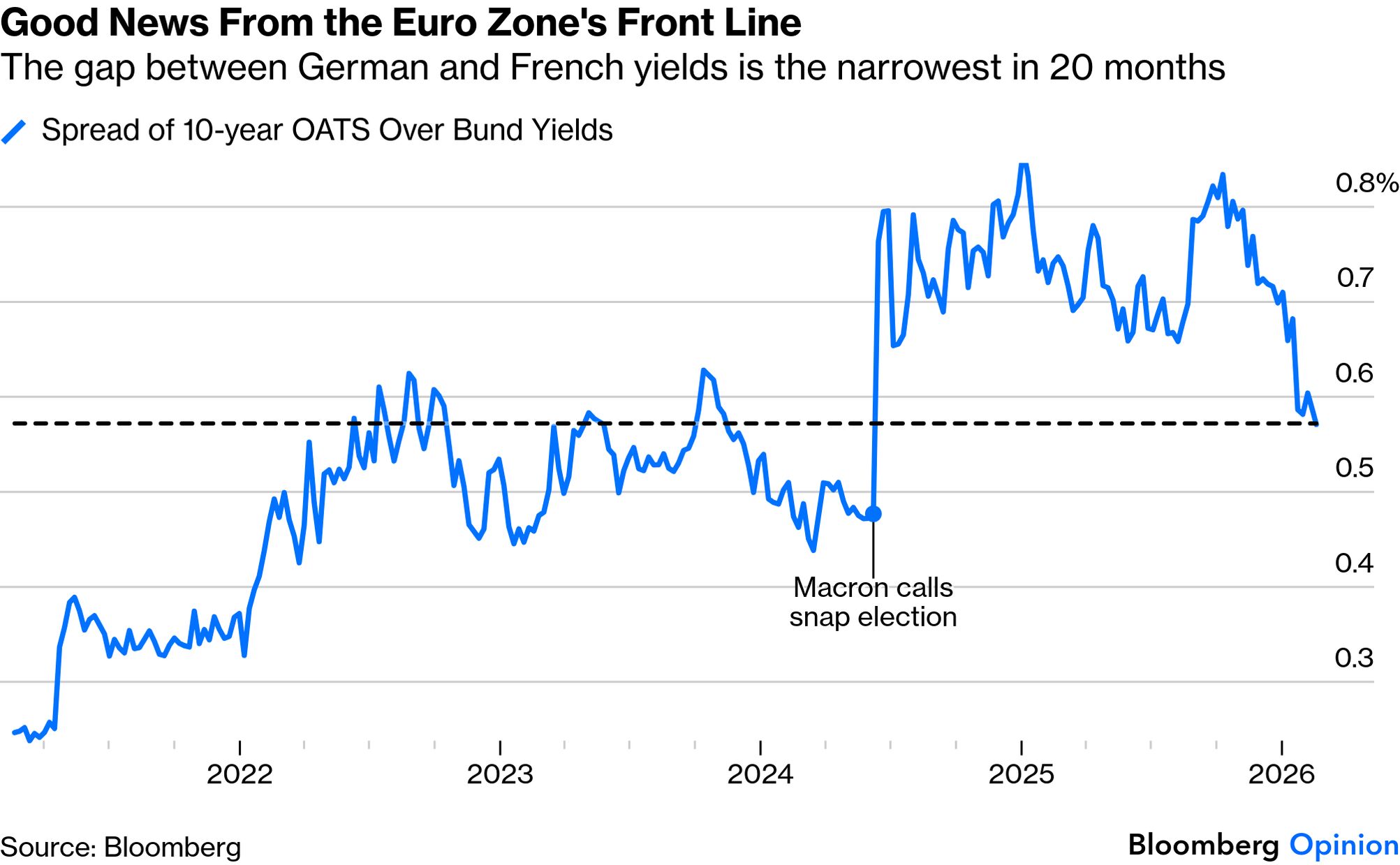 In other words, short-term concerns might drive a long-term mistake. To quote Shaia Hosseinzadeh of OnyxPoint Global Management, "This industrial revolution is unfolding in five years instead of 50. And we are trying to value it on a quarterly earnings model. No one alive has firsthand experience investing through a shift of this speed or magnitude." Hosseinzadeh notes further that Wall Street's habit of applying linear models to non-linear change is fault-prone and risks systematic over- or underestimates. After all, nobody predicted Amazon's hyperbolic growth after the dot-com bust. Wall Street's new emphasis on both the costs and benefits of AI, rather than just the benefits, is a healthy development. But it shouldn't be taken too far. —Richard Abbey More Central Bank Politics | Before Washington could even bring the saga of replacing Jerome Powell at the Federal Reserve to a conclusion, a similar drama is starting in Frankfurt. Christine Lagarde, according to the Financial Times, is planning to step down before the official end of her term in October 2027. The report hasn't been confirmed, but rings true as it would ensure that the existing French president, Emmanuel Macron, has a role in choosing her successor. By next May, there's a real possibility that France will have elected a hard-right leader. Like Powell's, her legacy will divide opinion for years to come. But Lagarde stands to leave with the European financial project looking its healthiest in years. Crucially, the market is beginning to relax over the fiscal crisis in France, which caused the yields of French OATS to explode after Macron's disastrous snap election in 2024 left the country with a logjammed legislature. The spread of OATS yields over equivalent German bunds, a terrifying source of friction at the heart of the euro zone, has in recent weeks regained most of the ground lost during Paris' political crisis: The recent weak dollar has also boosted the euro's buying power. In real effective terms, taking account of inflation, the currency is its strongest in more than a decade, at the top of its range since Greece's fiscal woes plunged the continent into a sovereign debt crisis in 2010: If these developments show the positives of the European project, the accelerated process of finding Lagarde's successor could parade the negatives. On top of arguments between hawks and doves, there is an arm-wrestle for national advantage as different countries try to get their person in place. Germany provides the ECB's Frankfurt home, but in a quid pro quo no German has ever headed it. Europe's biggest economy, with a tradition of tight money and a recent history of enforcing austerity during the sovereign debt crisis that infuriated the continent's periphery, retains great influence over the outcome. As a German, Ursula von der Leyen, currently heads the European Commission, the country is highly unlikely to provide the next president. The hawkish German governor Isabel Schnabel told Bloomberg that she would see out her term, which ends at the same time as Lagarde's. Spain, the most successful euro zone economy of late, is campaigning for its own candidate. Klaas Knot of the Netherlands seems the most likely contender on whom all could agree Once an ECB leadership is in place, the bank is more capable of swift and decisive action than any other European institution, as it has shown in successive crises. The selection process threatens to display why Europe's other institutions never get their act together. |