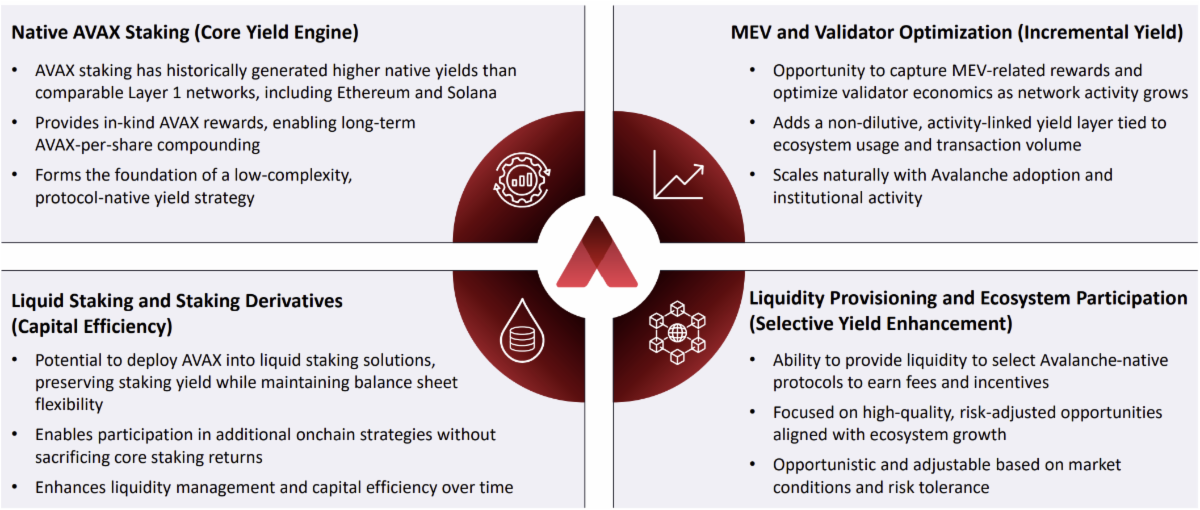 The company has already generated about $600k in staking re-wards through December 31, 2025 and is staking over 90% of its AVAX holdings.