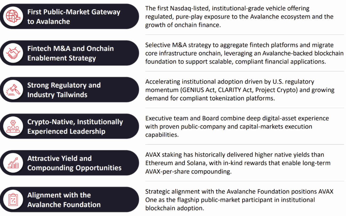 It expects approximately 180k AVAX in Q1 2026 re-wards and is advancing a fintech acquisition targeted for the first half of 2026 to accelerate growth in the onchain AVAX economy.