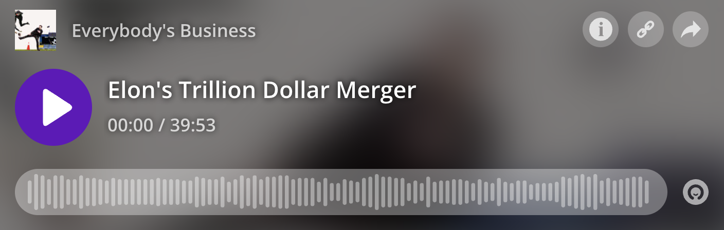 | Welcome to the Saturday edition of Businessweek Daily, featuring the Everybody's Business podcast. Let us know what you think by emailing the editor. If this email was forwarded to you, click here to sign up. There are two ways of looking at xAI, the artificial intelligence startup behind Elon Musk's increasingly problematic chatbot. On one hand, xAI, which also owns the social network formerly known as Twitter, has seen its valuation soar in the past year as investors bet Musk and other Silicon Valley entrepreneurs are near an AI breakthrough that will translate into trillions of dollars. On the other hand, the company is also incinerating huge piles of cash—perhaps as much as $1 billion per month. As Bloomberg News reporter Dana Hull explains on this week's episode of Everybody's Business, the same dichotomy applies to Musk's decision to merge his rocket company, SpaceX, with his AI venture. The combined business, which Musk wants to take public this year, could be worth $1 trillion or more, based on Musk's grandiose proposal to build AI data centers in space. The proposal isn't long on details, though that's very much in keeping with Musk's style. Also keeping with his style: The deal could be seen as a self-serving bailout. Also, co-hosts Max Chafkin and Stacey Vanek Smith go to the Super Bowl with business of sports reporter Randall Williams, who breaks down the NFL's decision to invite Bad Bunny and Green Day to perform. We also talk about the big trends in advertising during the game—get ready for a ton of AI during commercial breaks—and offer predictions about the planned halftime answer from the right, a simulcast performance by Kid Rock, MAGA man. Listen and subscribe on Apple, Spotify, iHeart and the Bloomberg Terminal. |