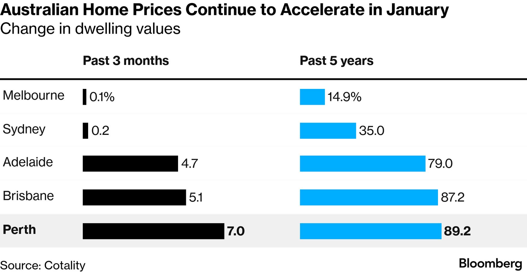![]() Good morning and welcome back. After a blockbuster Australian Open — that saw Carlos Alcaraz make history by becoming the youngest man to complete a career Grand Slam and Elena Rybakina stun world No.1 Aryna Sabalenka — we're moving on to a different kind of tension: where will Australian interest rates go next. The Reserve Bank faces the uncomfortable prospect of going against the global grain and switching back to raising interest rates tomorrow to keep inflation in check. Economists expect the RBA will increase its cash rate by a quarter percentage point to 3.85%. — Ainsley Thomson, Deputy Wealth Team Leader What's happening nowIn the housing market, home-price growth gathered pace in January — highlighting the challenge for RBA policymakers as they weigh interest-rate increases in a property market already grappling with stretched affordability. The Home Value Index advanced 0.8%, accelerating from a 0.6% gain in December, property consultancy Cotality said. Perth recorded the fastest price growth at 2%, followed by Brisbane's 1.6% and Darwin's 1.5%. ![]() Rio Tinto and Glencore are poised to seek more time to work on a deal to create the world's biggest miner as they wrangle over the premium that Rio would need to pay, people familiar with the matter said. While both remain keen on a deal, more time will likely be needed to hash out a valuation — requiring the UK's Takeover Panel to extend a deadline — according to the people. ![]() What happened overnightHere's what my colleague, market strategist Mike "Willo" Wilson says happened while we were sleeping… News confirming President Donald Trump's nomination of Kevin Warsh to lead the US central bank — a man who's seen as less supportive of deep rate cuts and more worried about inflation — saw the dollar surge the most since May. Gold dropped the most in four decades. The Kiwi and Aussie rallies were brought to an end, but both still posted strong monthly gains. The Aussie has eased this morning on weak China factory data. This week has the RBA probably hiking interest rates on Tuesday, while New Zealand's jobs data lands Wednesday. Local stocks are in for a tough start, assuming they track US peers lower, as indicated by ASX futures. While the trigger for Friday's gold and silver crash was the news that Trump planned to nominate Warsh to lead the Fed, many had been warning that the metals markets were overstretched and due for a correction following weeks of relentless surges. Still, the speed and scale of the drop was breathtaking, particularly for a market as large and liquid as gold. Here's a look at how Chinese speculators set the stage for what unfolded. Nvidia CEO Jensen Huang said the company's proposed $100 billion investment in OpenAI was "never a commitment" and that the company would consider any funding rounds "one at a time." The Wall Street Journal reported on Friday that the investment plan announced in September had stalled after some inside Nvidia expressed doubts. ![]() Jensen Huang in Taipei. Bitcoin slipped below $76,000 in thin weekend trading, dropping about 40% from its 2025 peak and revisiting levels last seen in the aftermath of the "Liberation Day" tariff fallout. What began as a sharp crash in October has morphed into something more corrosive: a selloff shaped not by panic, but by absence of buyers, momentum and belief. There are five times as many people alive today as there were in 1900, yet humanity is better fed than at almost any point in its history, writes David Fickling for Bloomberg Opinion. That's thanks to three major developments that have made our planet far more resilient to the risk of starvation: yield improvements, water usage and trade. Worryingly, all are threatened right now. ![]() What to watchAll times Sydney One more thing...Melania, a documentary about the first lady and the days leading up to her husband's second inauguration, took in a stronger-than-expected $7 million at US and Canadian theaters in its opening weekend, according to Comscore. The movie, which is distributed by Amazon.com's MGM Studios, focuses on Melania Trump during the 20 days before Trump's return to the presidency last year. It was released in 1,778 theaters in the US and Canada and in 27 territories. It scored just an 11% approval rating from professional critics and 99% from regular viewers, according to RottenTomatoes. ![]() First Lady Melania Trump arrives for the world premiere of 'Melania' at the Kennedy Center in Washington on Jan. 29. Bloomberg