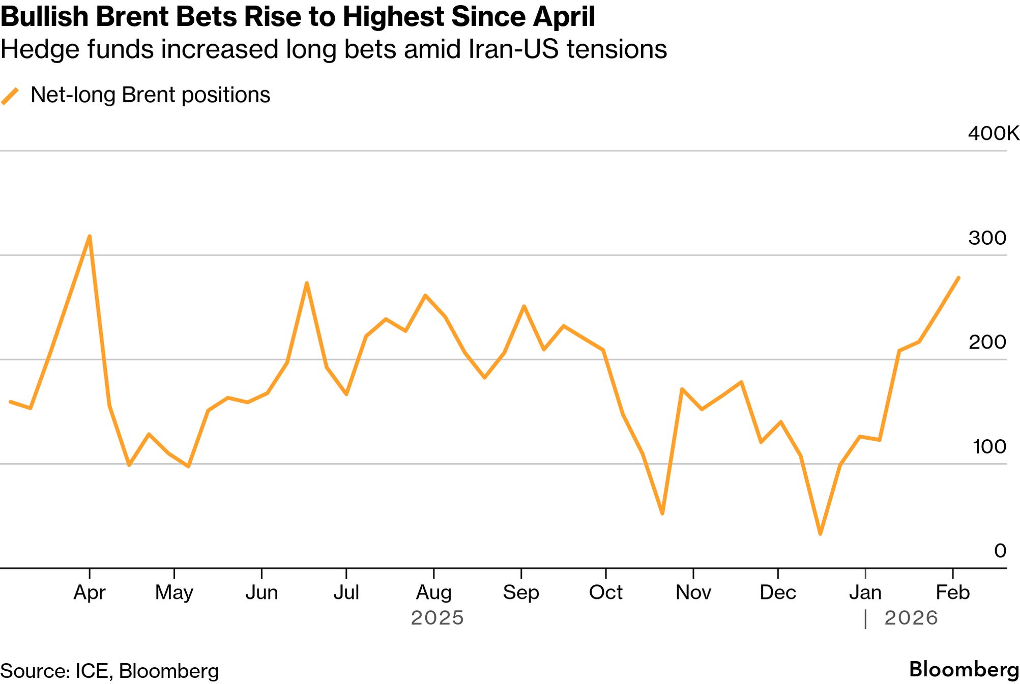 | Hedge funds turned the most bullish on Brent crude since early April as traders guarded against the risk of a conflict between the US and Iran and potential supply disruptions from the OPEC member. New American threats to attack Iran, which it bombed last June in a surprise attack, have driven investors to raise bullish oil bets for four consecutive weeks. The two countries appeared to square off at sea and in the air on Tuesday, as the Pentagon moved a group of naval vessels closer to Iran's shores, reviving a risk premium that subsequently ebbed as potential plans for talks took shape. Iran said Friday it agreed with the US to continue indirect talks to de-escalate tensions, with Tehran describing the first day as positive. Negotiations, mediated by Oman in its capital, Muscat, had a "good start," Iran's Foreign Minister Abbas Araghchi told state TV. He added that he thought the sides "can reach an agreed framework for future talks" if the process continues in the same vein. | |