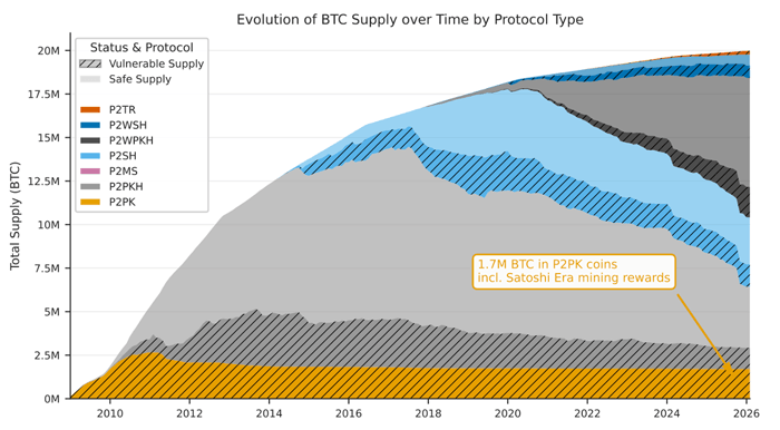 | And about 17.3% of all Bitcoin that has been "dormant" – coins that have been sitting, untouched, in crypto wallets – for 10 years or more is vulnerable. |