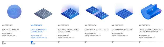 | Today, I estimate that Google's Quantum AI team has achieved Milestone 3 and is working on Milestone 4. And the company will attain Milestone 5, which is the scale at which it will be capable of a quantum computer with 500,000 physical qubits. |