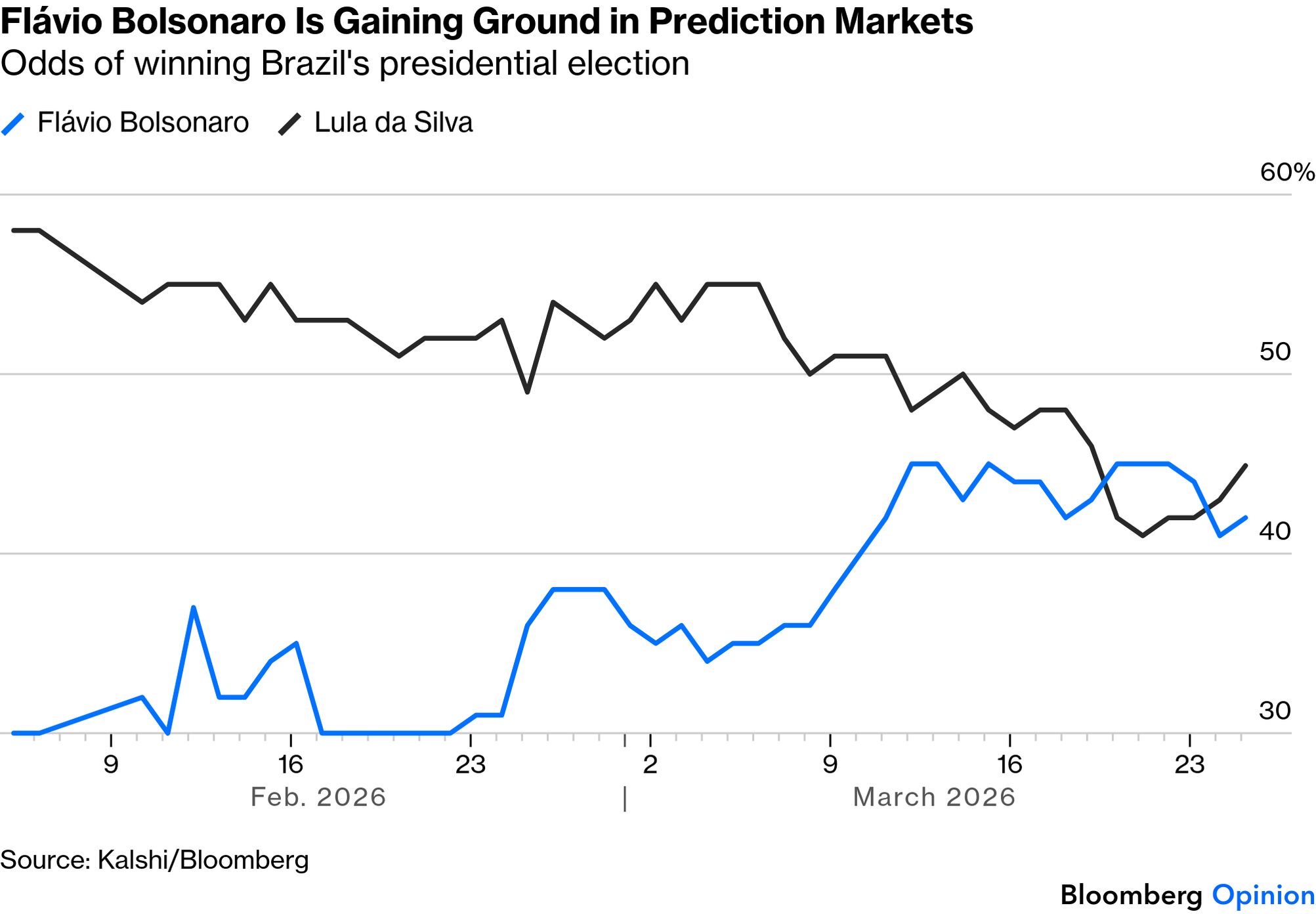 ![]() Welcome to Balance of Power, bringing you the latest in global politics. If you haven't yet, sign up here. Luiz Inácio Lula da Silva has made a career out of political resurrection. He lost three presidential bids in Brazil before finally winning in 2002. He was written off after being imprisoned in 2018, only to return, reclaim his power and secure a historic third term in Latin America's largest nation. Even during this administration, when his approval ratings sank and his government appeared adrift, fighting back against US President Donald Trump's trade war with Brazil handed him a narrative he could seize. With just months to go before October's election, Lula now faces yet another test. This time, the comeback script isn't so clear. Polls show his once comfortable lead has evaporated, with Flávio Bolsonaro — the eldest son of his longtime rival and right-wing former President Jair Bolsonaro — edging ahead. The reversal comes as voters turn more pessimistic about Brazil's economic prospects and a sprawling corruption probe that, while not implicating Lula directly, is dragging down institutions he is seen as close to. ![]() Lula has seen the damage scandal can unleash. More than a decade ago, Operation Car Wash led to the downfall of Dilma Rousseff, his hand-picked successor. Inside the government, there is little consensus on how to respond. Some allies argue for patience, betting Lula's experience will ultimately prevail. Others want a more aggressive campaign, warning that ceding ground now risks allowing Bolsonaro to consolidate his image as a more moderate heir to his father's movement. A rare point of agreement is the need to boost credit and stimulate consumption. It's too early to rule Lula out. Local or global conditions could shift and few politicians have proved as adept at reinvention. But at 80, the question is whether he can adapt once again — or if, this time, Brazil's most enduring political survivor ends his career in defeat. — Walter Brandimarte ![]() Lula greets supporters during a ceremony to commemorate three years since an attempted coup by Jair Bolsonaro in Brasília on Jan. 8. Photographer: Ton Molina/Bloomberg Global Must ReadsTrump again pushed back his deadline — to April 6 — for Iran to strike a deal with the US or face more attacks on energy sites, saying talks to end the war were going "very well" while also repeating that the American effort was "ahead of schedule." Three Federal Reserve officials, meanwhile, expressed growing anxiety yesterday over the US economic outlook, with one policymaker saying the spike in oil prices is making inflation a bigger concern than employment. ![]() WATCH: Iran is awaiting a response from the US after rejecting Trump's 15-point plan to end the war. Bloomberg's Joumanna Bercetche reports. Russia is abandoning plans for a sharp downgrade to its 2026 economic-growth forecast as the war in Iran boosts oil revenue, even as Ukrainian attacks on Baltic Sea export infrastructure are currently undermining Moscow's ability to benefit from the crude rally. Meanwhile, Ukraine risks running out of money to pay for its defense against Russia within two months as tens of billions of euros in assistance are held up. UK Prime Minister Keir Starmer suggested he won't be bullied by Trump in a further demonstration of how the war on Iran has frayed the so-called special relationship between their two countries. Separately, the US president said that NATO's refusal to cooperate with his military operations in the Middle East was a "test" for the security alliance and that he would "remember" its response, ratcheting up his criticism of the bloc. The US Senate passed legislation to fund most of the Department of Homeland Security, forging a path to end a partial government shutdown that snarled airport security and threatened to ripple through an economy already roiled by the war. The bill, which must still pass the House and be signed by Trump, marks an abrupt reversal for Republicans, who had blocked similar proposals backed by Democrats to partially fund the department for weeks. ![]() A TSA agent sits by a window as travelers stand in long lines at Atlanta airport on Monday. Photographer: Megan Varner/Getty Images China launched a pair of investigations into US practices on supply chains and renewable products in retaliation for US trade probes ahead of an expected presidential summit. Chinese Commerce Minister Wang Wentao had raised "serious concerns" with US Trade Representative Jamieson Greer over investigations that followed a Supreme Court ruling that invalidated previous duties. Treasury Secretary Scott Bessent said a US insurance program meant to boost shipping through the Strait of Hormuz will begin soon, a move that may help revive flows of much of the world's oil and gas supplies. Pakistan resumed its military operations in Afghanistan that have killed hundreds on both sides of the border, ending a temporary ceasefire that was agreed last week to observe the Muslim festivity of Eid. ![]() Taliban security personnel near the Torkham border crossing between Afghanistan and Pakistan on Feb. 27. Photographer: Aimal Zahir/AFP/Getty Images US Secretary of State Marco Rubio and his Group of Seven counterparts traded barbs over the wars in Iran and Ukraine, casting doubt on Europe bowing to Trump's demand for military help in the Gulf. South African President Cyril Ramaphosa walked back a claim that US pressure led to his nation being disinvited from the G-7 summit in France. ![]() Don't miss from Bloomberg Weekend: Mishal Husain chats with Israeli security expert Shira Efron about the war on Iran, Nick Bryant looks at what Trump's rise means for the future of US politics and Justin Fox examines the impact of punishment on crime. Subscribe to the newsletter here. Sign up for the Washington Edition newsletter for news from the US capital and watch Balance of Power at 1 and 5 p.m. ET weekdays on Bloomberg Televisio