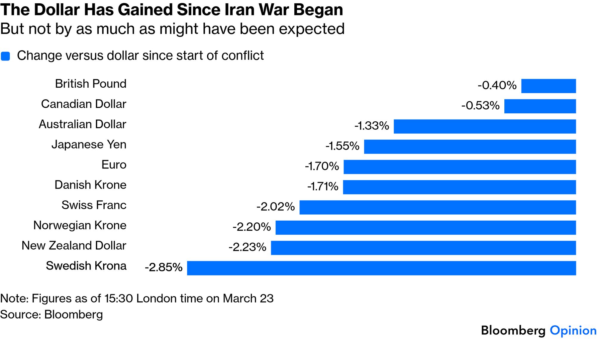 Fighting between Iran and the US-Israeli alliance continued unabated, a day after Donald Trump claimed talks are under way to end the conflict. Saudi Arabia has indicated it's closer to joining the attacks on Iran, the Wall Street Journal reported. Stocks struggled for direction and oil rose, as traders grappled with a wide range of possible outcomes. US investigators are decoding the black box from the Air Canada Express plane that collided with a fire truck at LaGuardia to determine what caused the first deadly accident at the airport in more than 30 years. And read our account of how panic set in as air-traffic controllers helped the fire truck navigate a rain-slicked tarmac in the moments before the crash. More signs of stress in the world of private credit. Apollo capped withdrawals from one of its largest non-traded funds for retail investors. And a fund run by Future Standard and KKR was cut to junk by Moody's, a rare occurrence in the $1.8 trillion market. ![]() Markwayne Mullin. Photographer: Kent Nishimura/Bloomberg Senators from both parties signaled optimism about a deal to fund the DHS and end the five-week partial shutdown, which has increasingly snarled air travel across the country. Separately, the Senate voted 54-45 to confirm Markwayne Mullin as DHS secretary, putting the Oklahoma senator and former mixed martial arts fighter in charge of Trump's immigration crackdown.