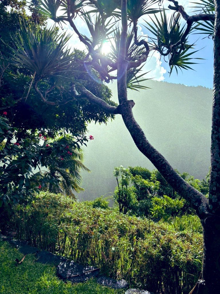 Vue de la terrasse d'un restaurant à ne pas louper si vous passez à la Réunion : La villa Fleurié, à Saint-Denis, dans les hauteurs. |