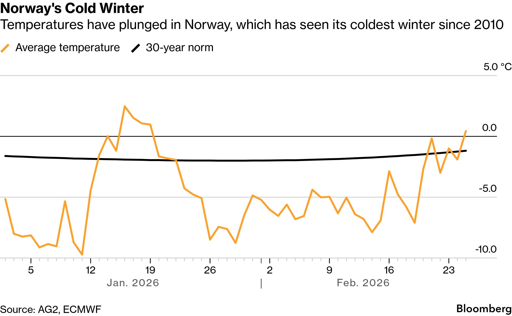 Brussels Edition is taking a break over Easter and will be back Tuesday, April 7. Seen and Heard on Bloomberg ![]() News that Eli Lilly's weight-loss pill Foundayo gained FDA approval came as no surprise to rival Novo Nordisk, according to its head of US Operations Jamey Millar. "Imitation is the best form of flattery," he told Bloomberg TV. "We're exceedingly proud to have pioneered this category and look forward to sustaining the trajectory we've seen since launch with Wegovy pill," Millar said, also highlighting Novo's recently-launched subscription model. Chart of the Day![]() Norway's driest winter in decades has led to low water levels in reservoirs, creating a deficit of about 25 terawatt-hours of energy. The shortfall in hydropower is affecting electricity markets, with exports to the UK and Germany slashed and Nordic prices sharply higher. Norway's coldest winter since 2010 is the result of persistent high pressure near Greenland that blocked flows of moist Atlantic air into the Nordic region. Coming Up